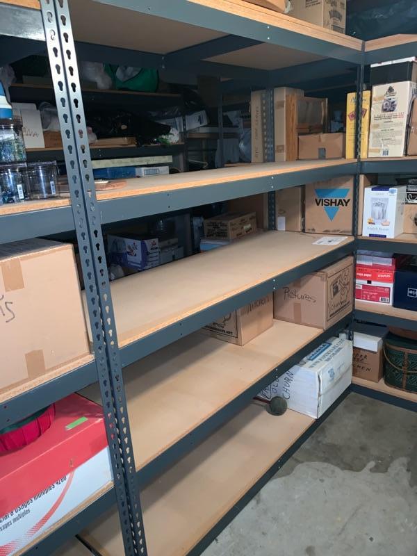 Heavy Duty Metal and wood shelves. 6 feet wide, 2 feet deep , 7 feet tall