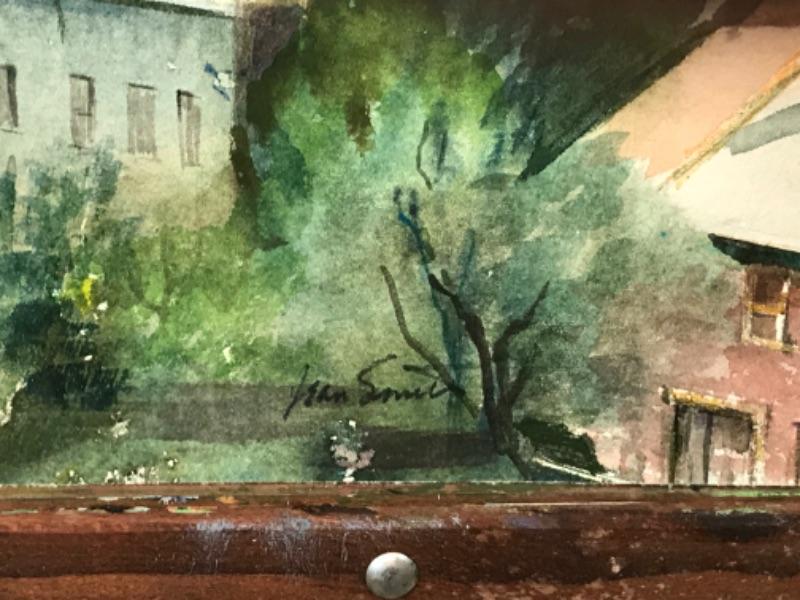 Pair of Jean Ranney Smith signed original watercolor paintings “Rooftop View” measures 17”x13” and “Home in the City” measures 20”x15”