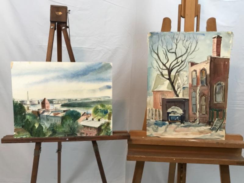 D - 213 Jean Ranney Smith Original Watercolor Paintings “Rooftop View” “Home in the City”