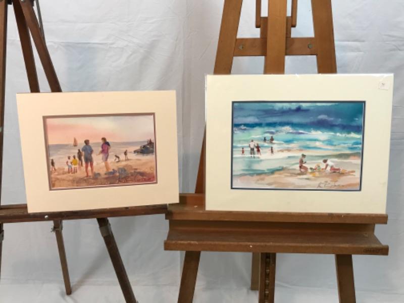 D - 217 Jean Ranney Smith Original Watercolor Paintings “Fun In The Ocean” “A Day At The Beach”