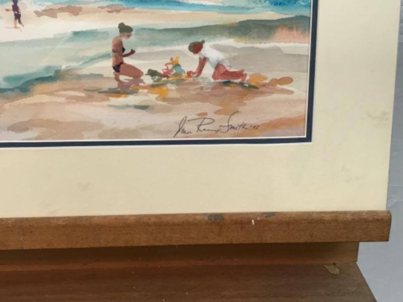 Pair of Jean Ranney Smith signed original watercolor paintings. “Fun In The Ocean” measures 18”x14” including mat and “A Day At The Beach” measures 14”x11” including mat