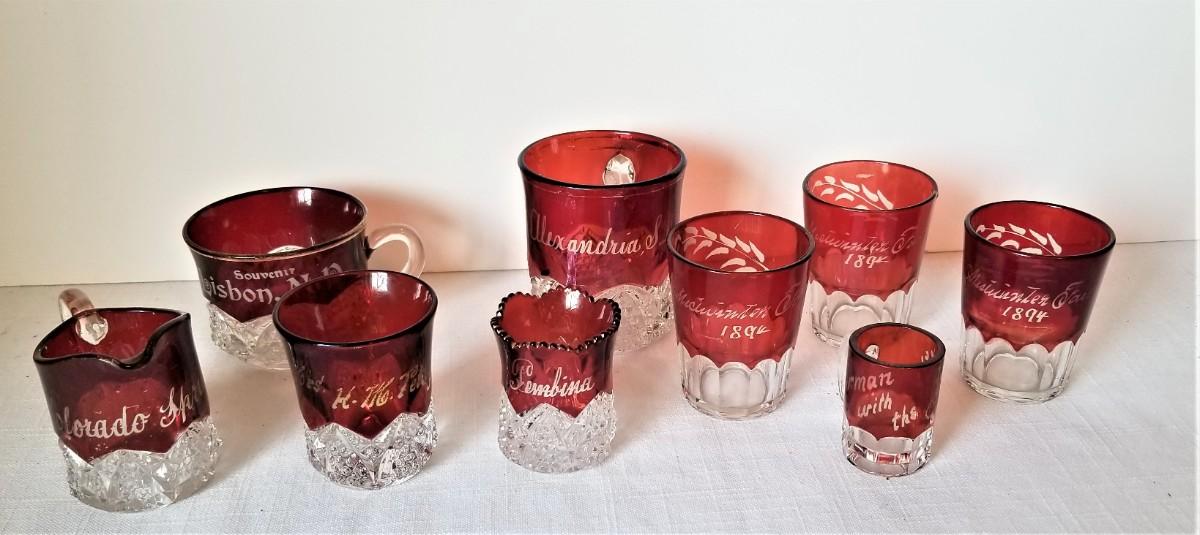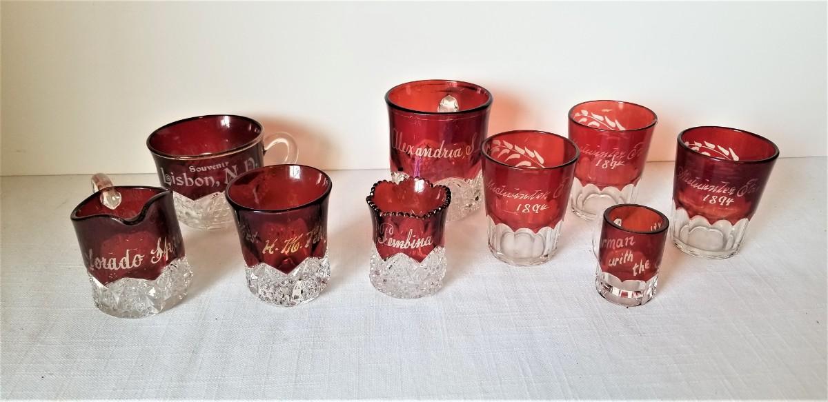 Lot #217  Lot of antique Ruby Flashed Souvenir Glass