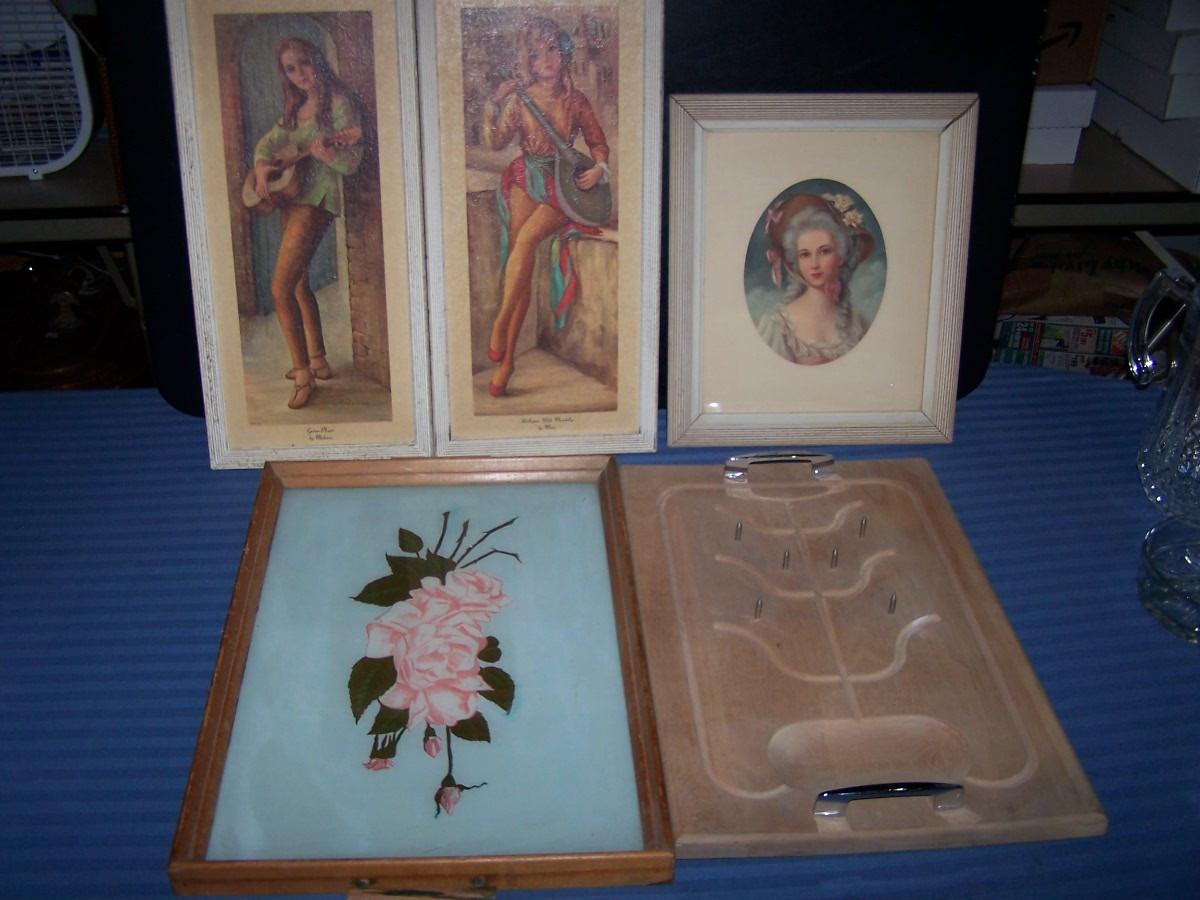 THIS IS LOVELY VINTAGE MISC ITEMS.... THE WOODEN MEAT TRAY IS 11 1/2'' X 18''.... LIGHT WEAR....