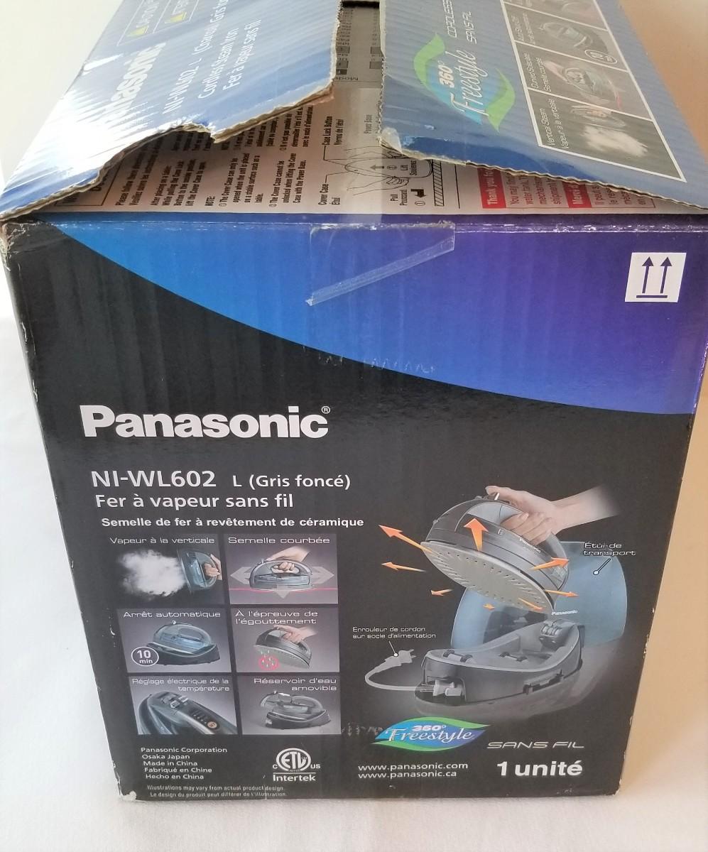 New in Box - Panasonic steam iron - vertical steam, detachable water tank, auto shut off. Model NI-WL602.