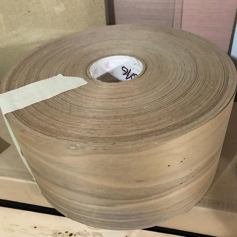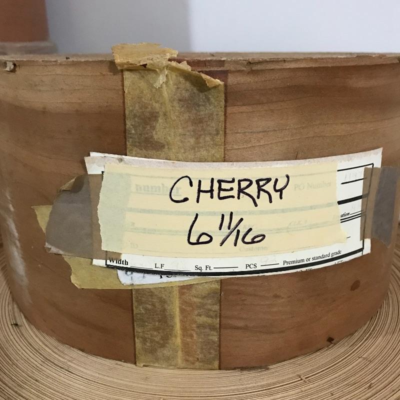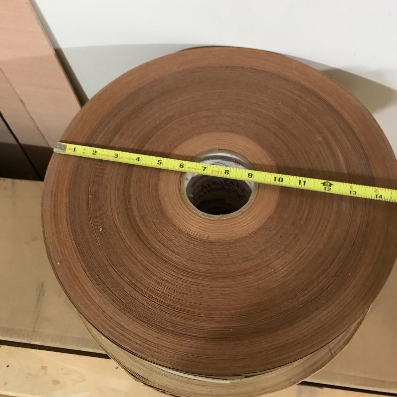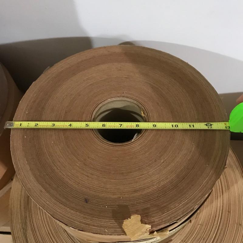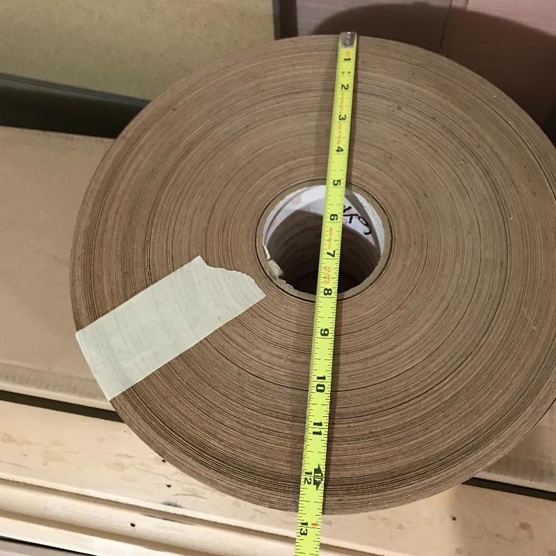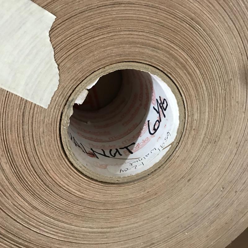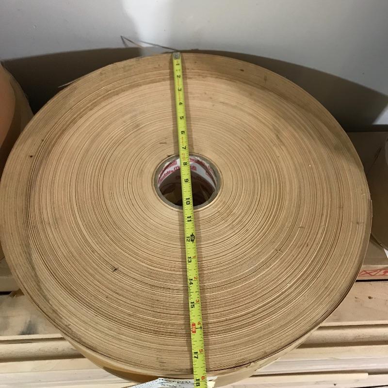 First of four rolled laminate lots. Eight rolls of various size and wood type laminate. Each roll is labeled with width. See photos. No shipping.