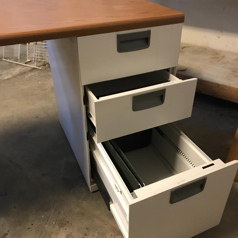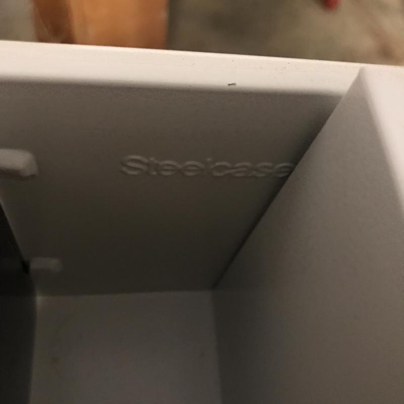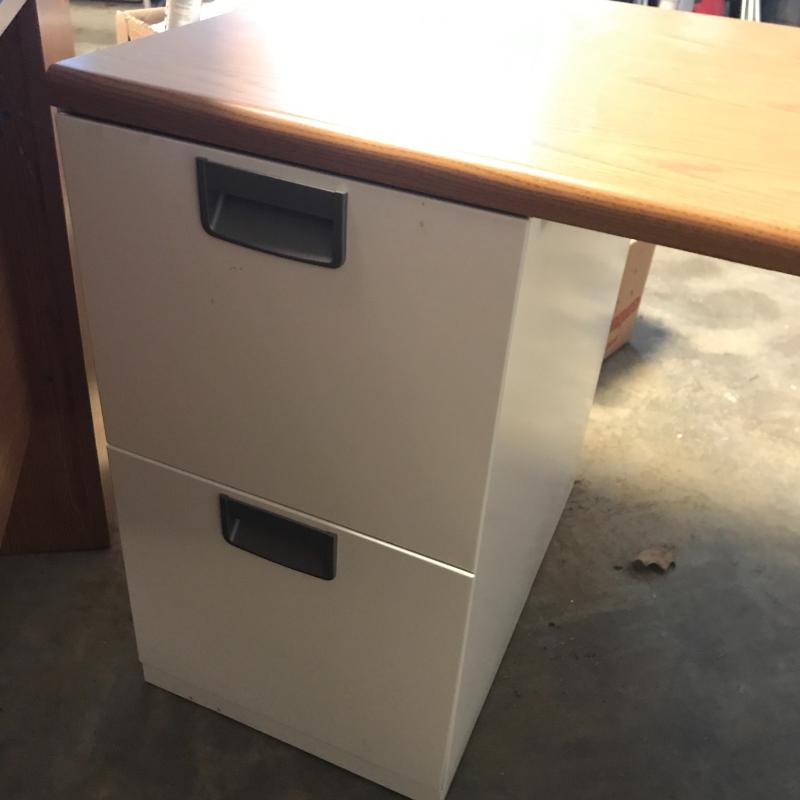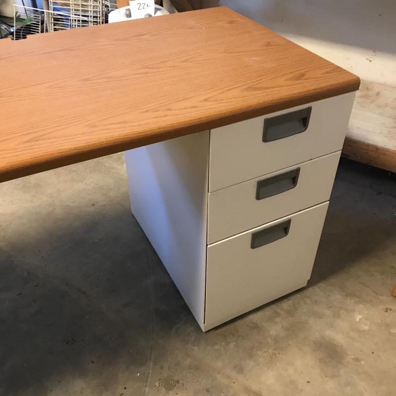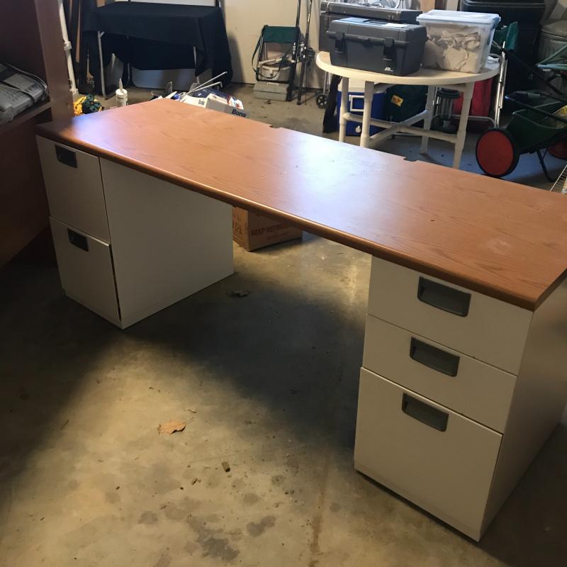 Long desk by Steelcase with metal drawers. White metal bottom with wood colored pressed wood top. Very good condition. Measures 72”l x 24”w x 28.5”h No shipping. Local pick up in Asheville, NC only.