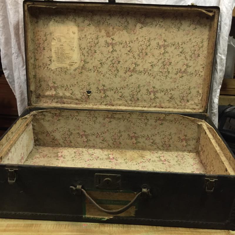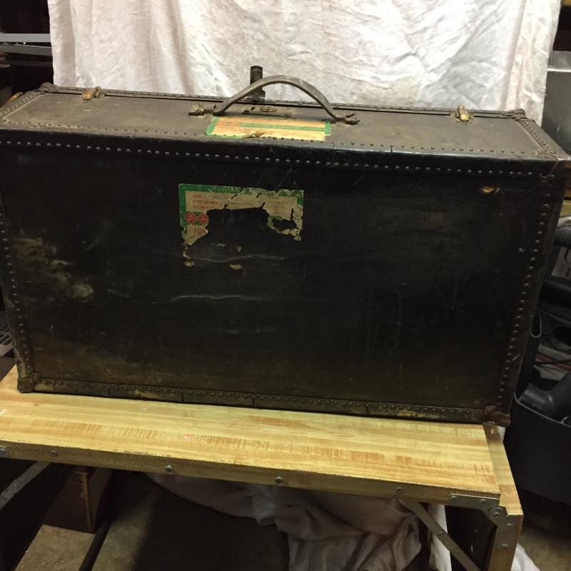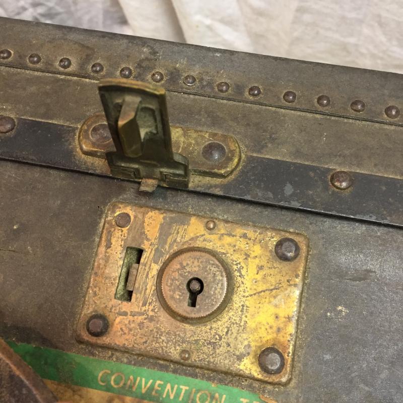 Vintage Trunk with no tray or keys. Measures 30” x 16 1/2” x 10”