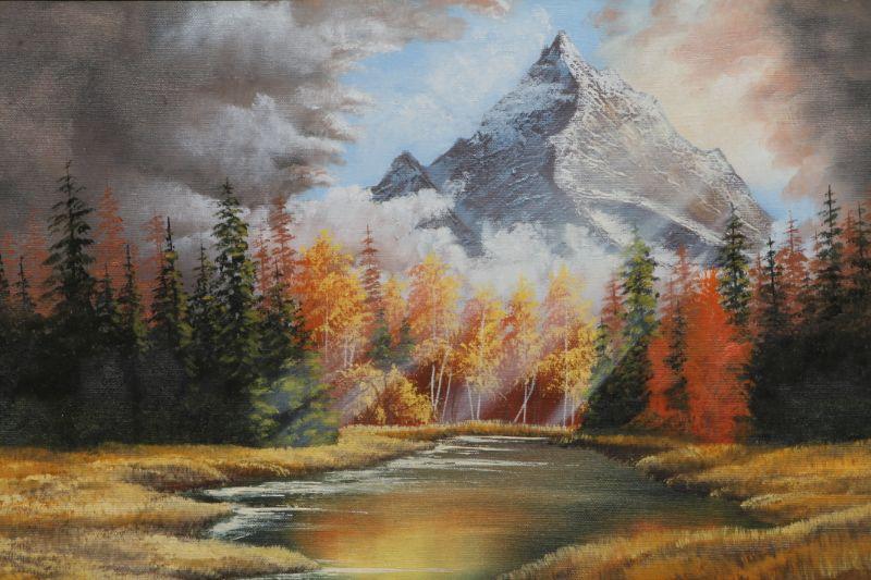 Lot 2-171: Vintage Framed Original Mountain Landscape Oil Painting SIGNED by SHARON KAY {24" x 20"}