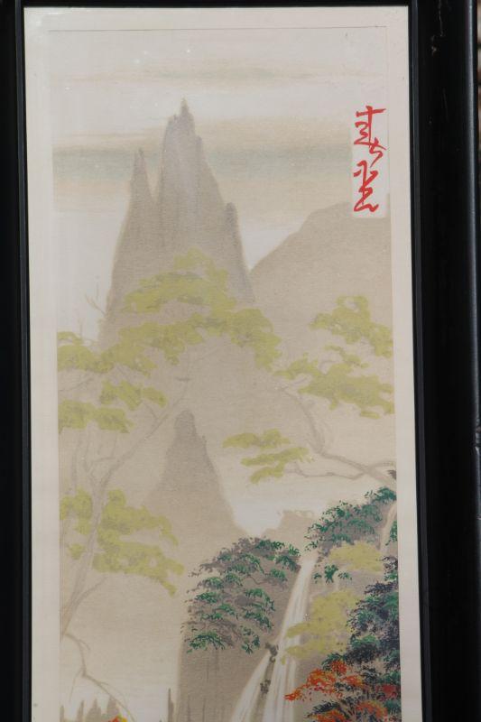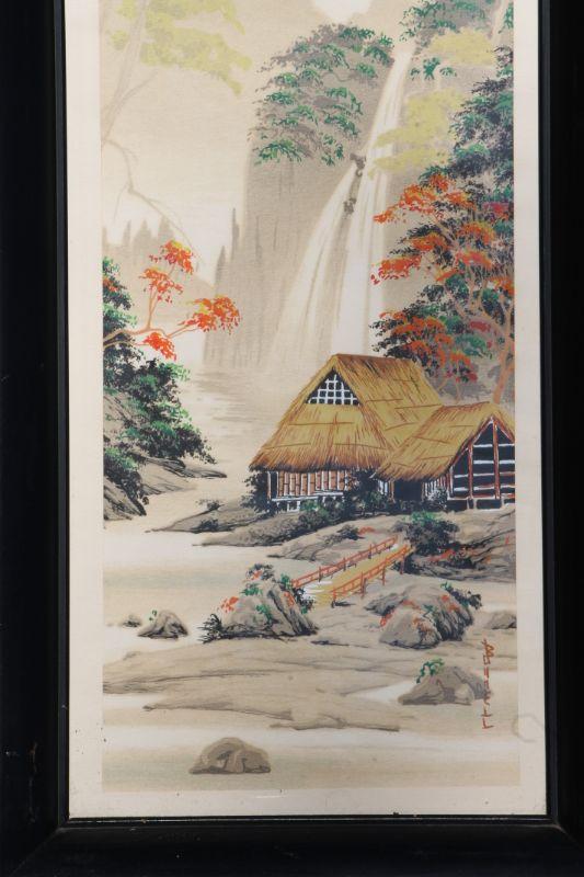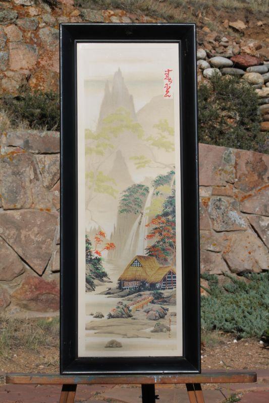 Lot 2-179: Vintage Asian Waterfall Scene Framed {33" x 13"}