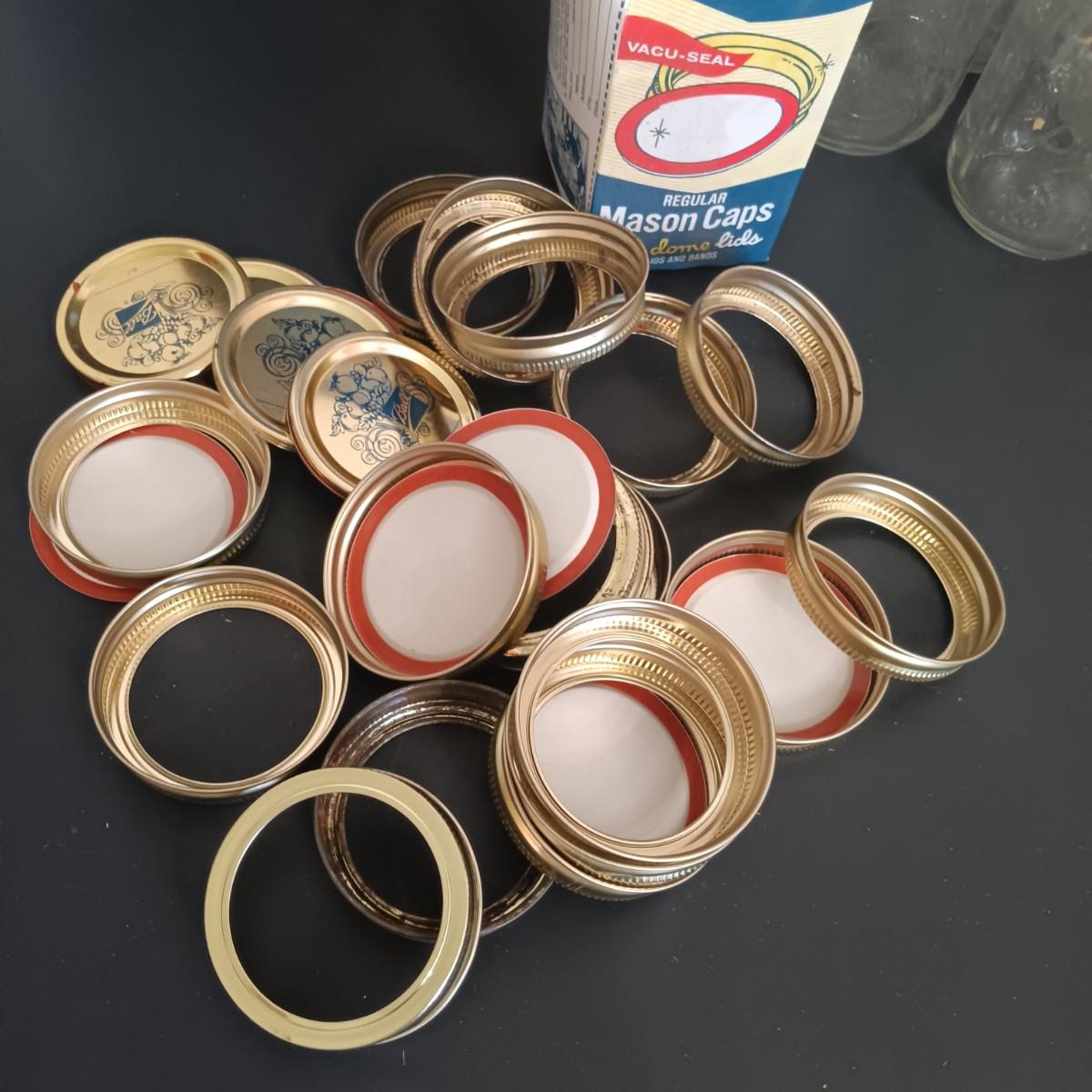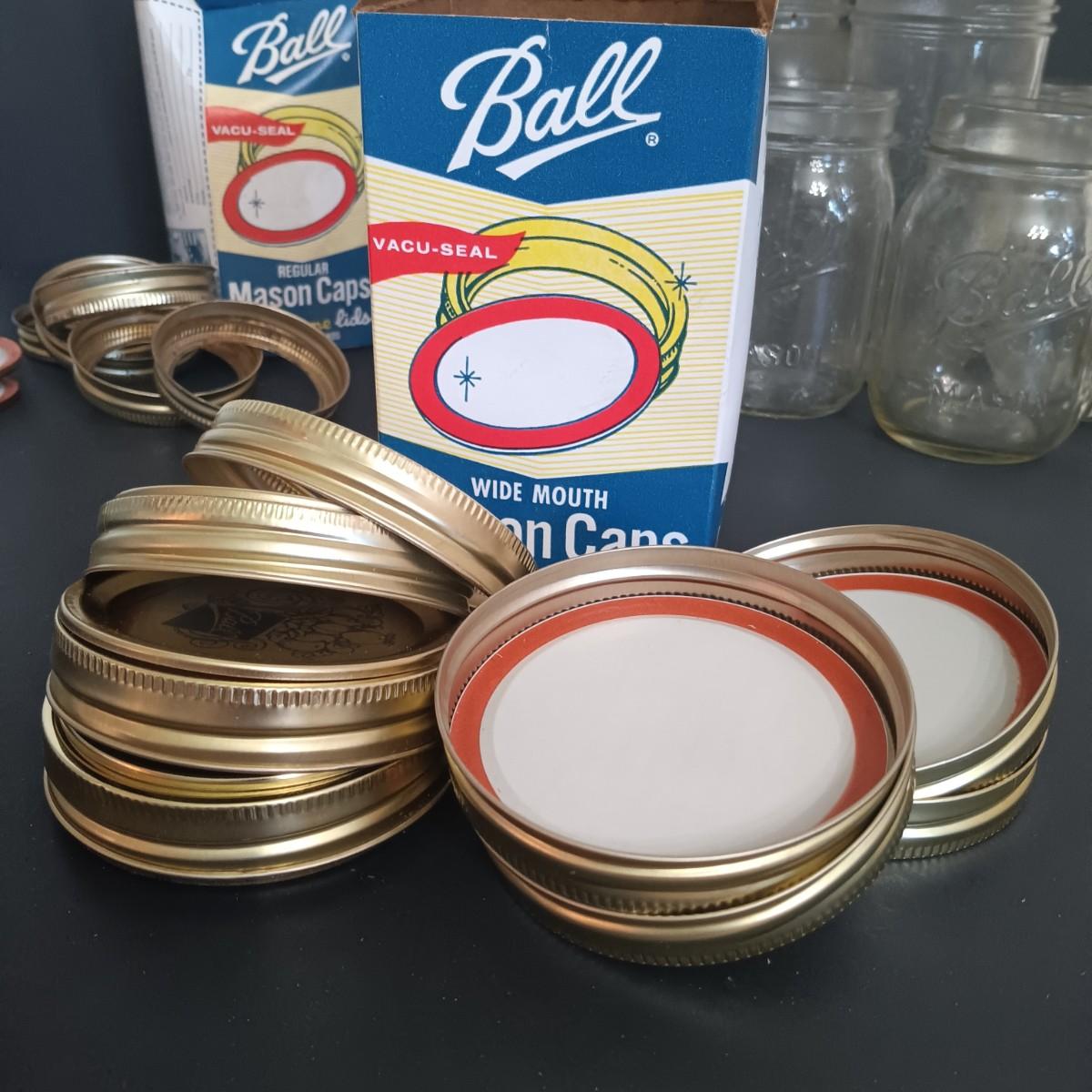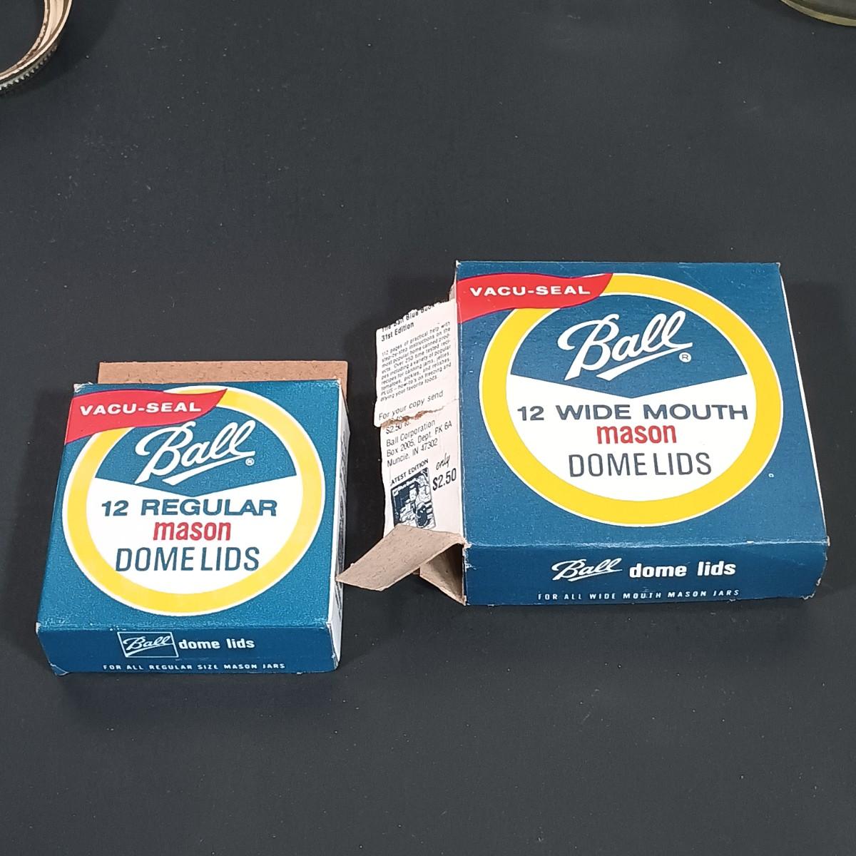 LOT 217D: Collection of Regular & Wide Mouth Mason Jars & Dome Lids, Mason Caps & More