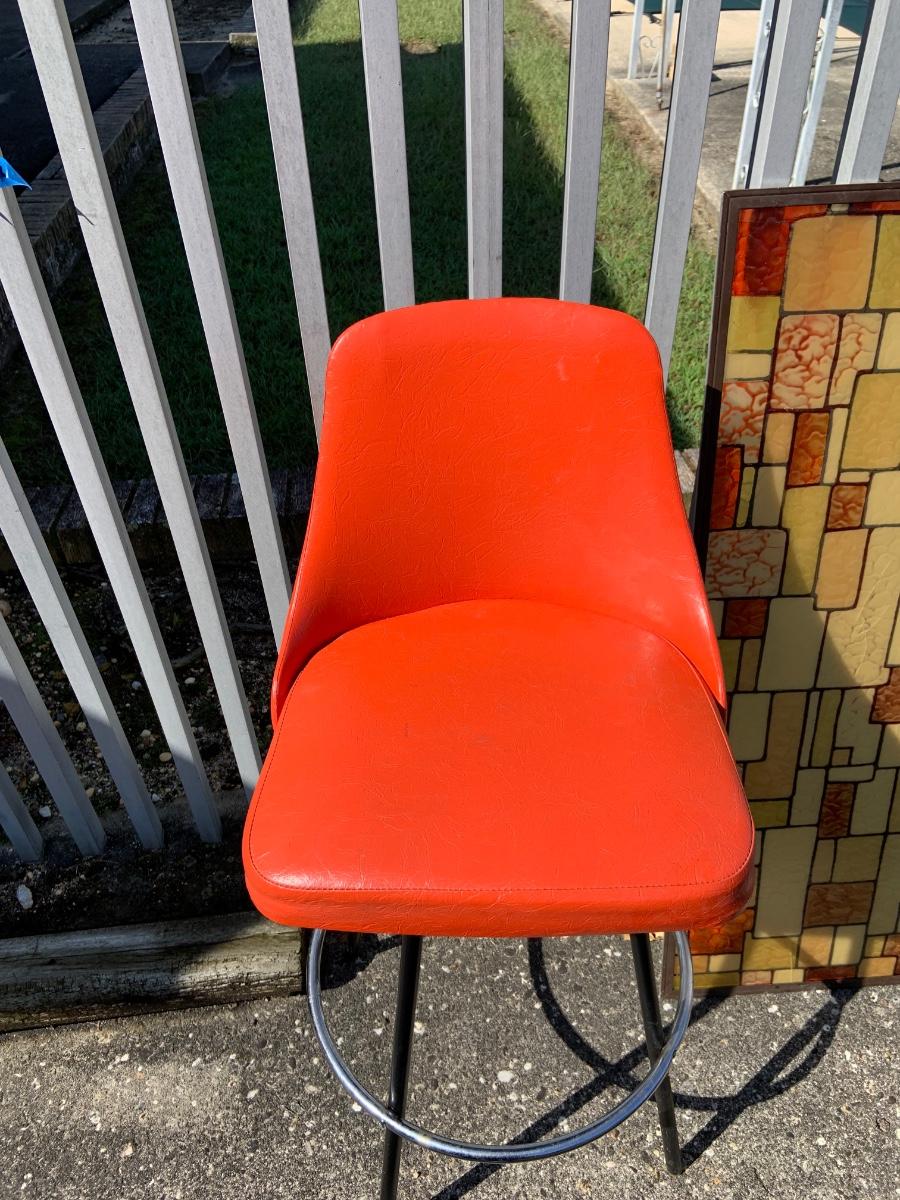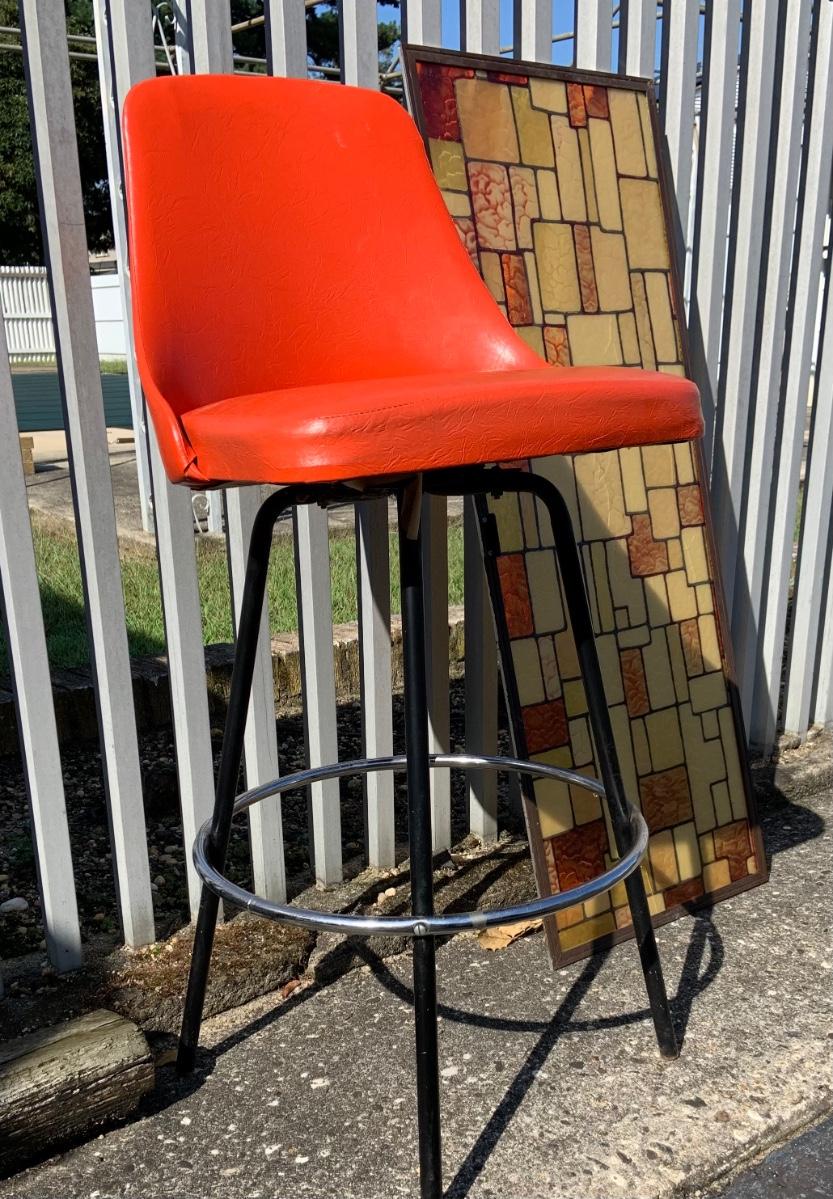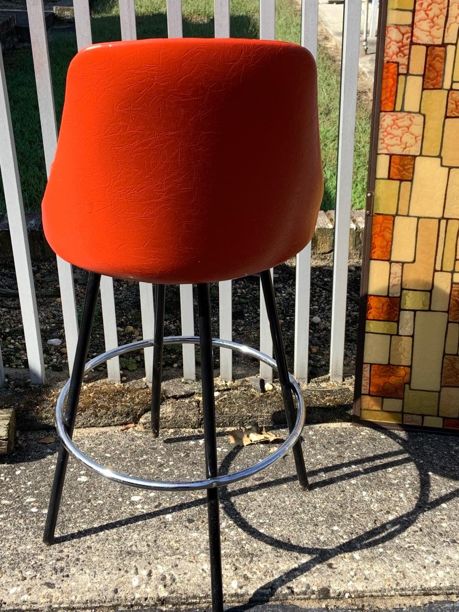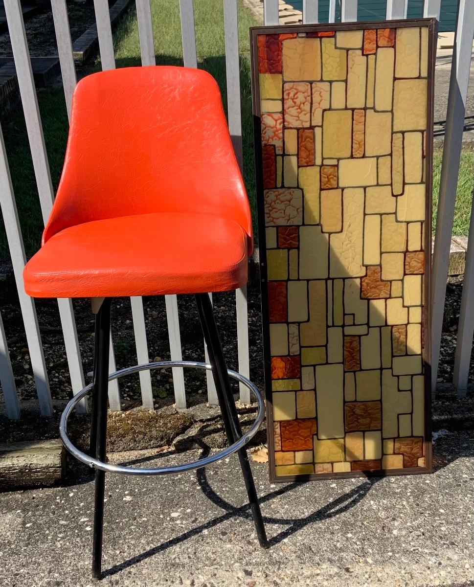 Lot: 217G: Mid Centrury Modern Hamilton Cosco Orange Swivel Bar Stool and Acrylic Window Shade Panel