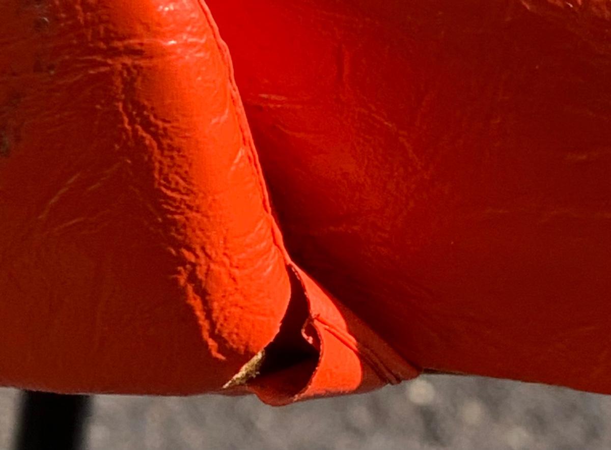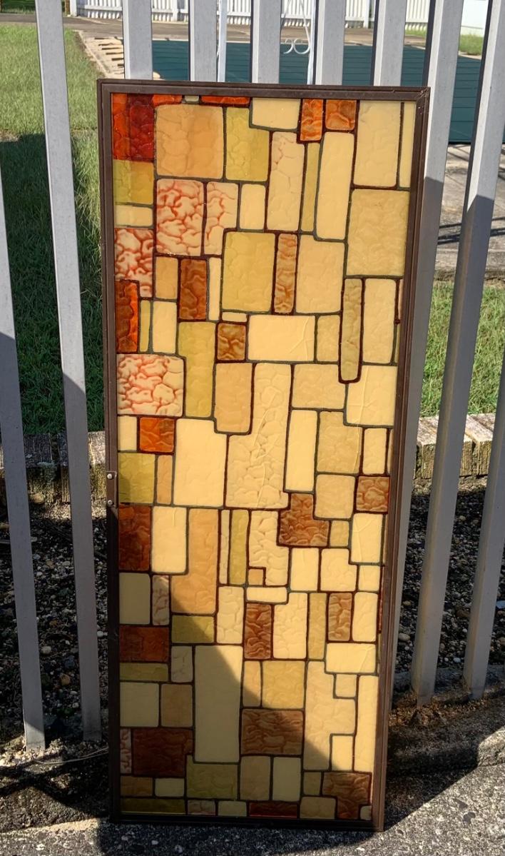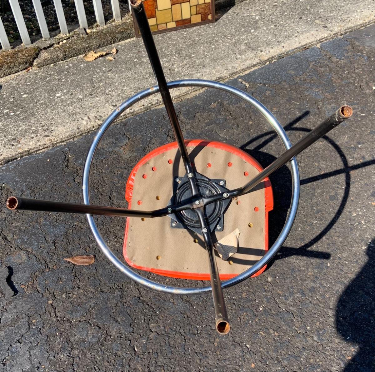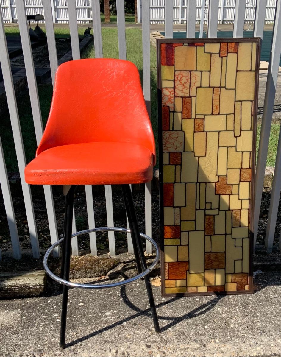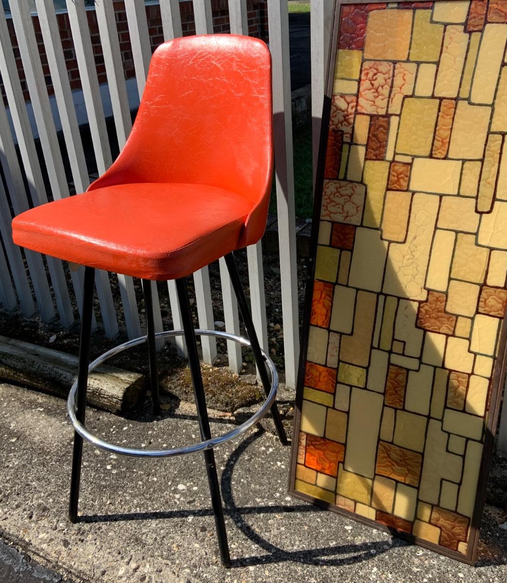 Lot: 217G: Mid Centrury Modern Hamilton Cosco Orange Swivel Bar Stool and Acrylic Window Shade Panel