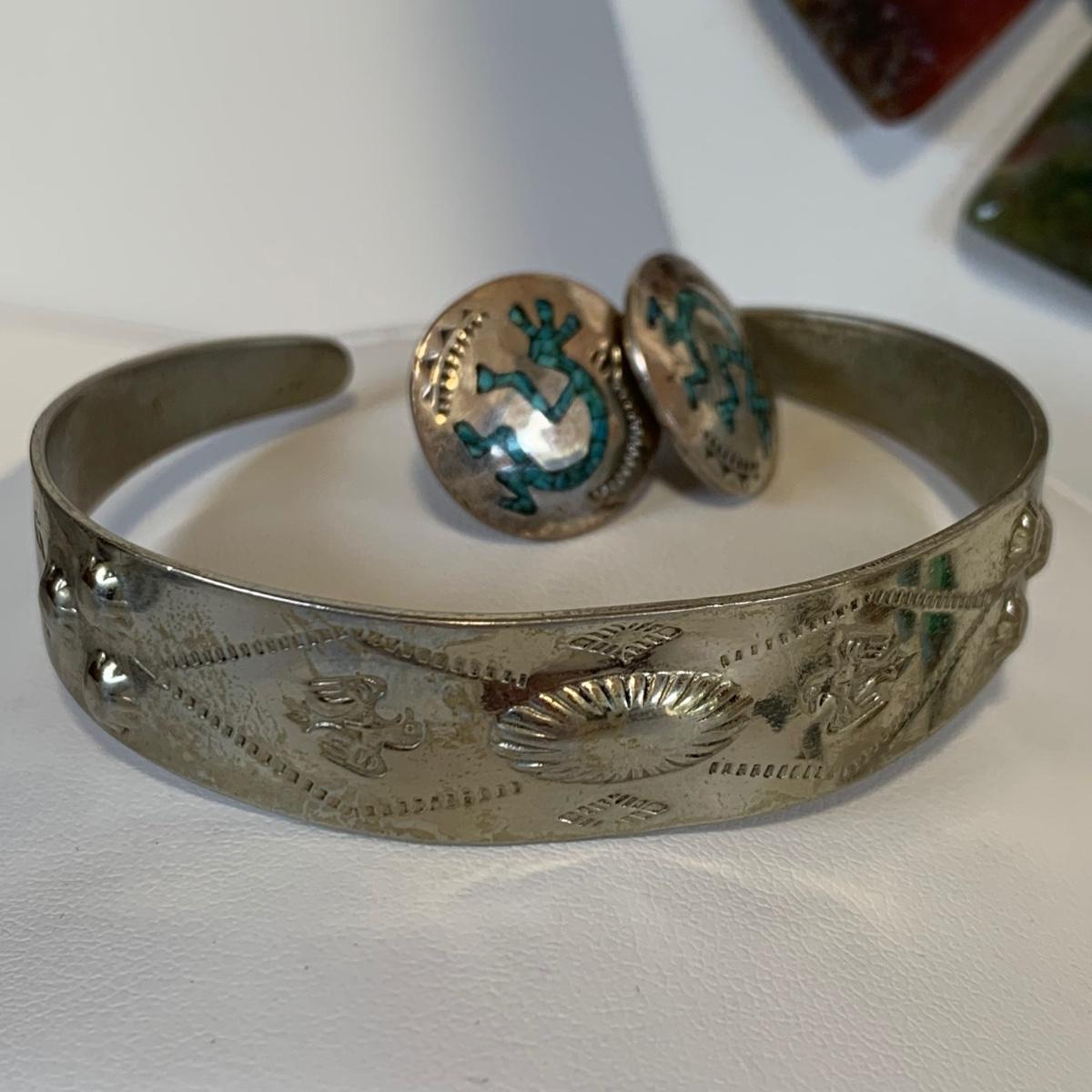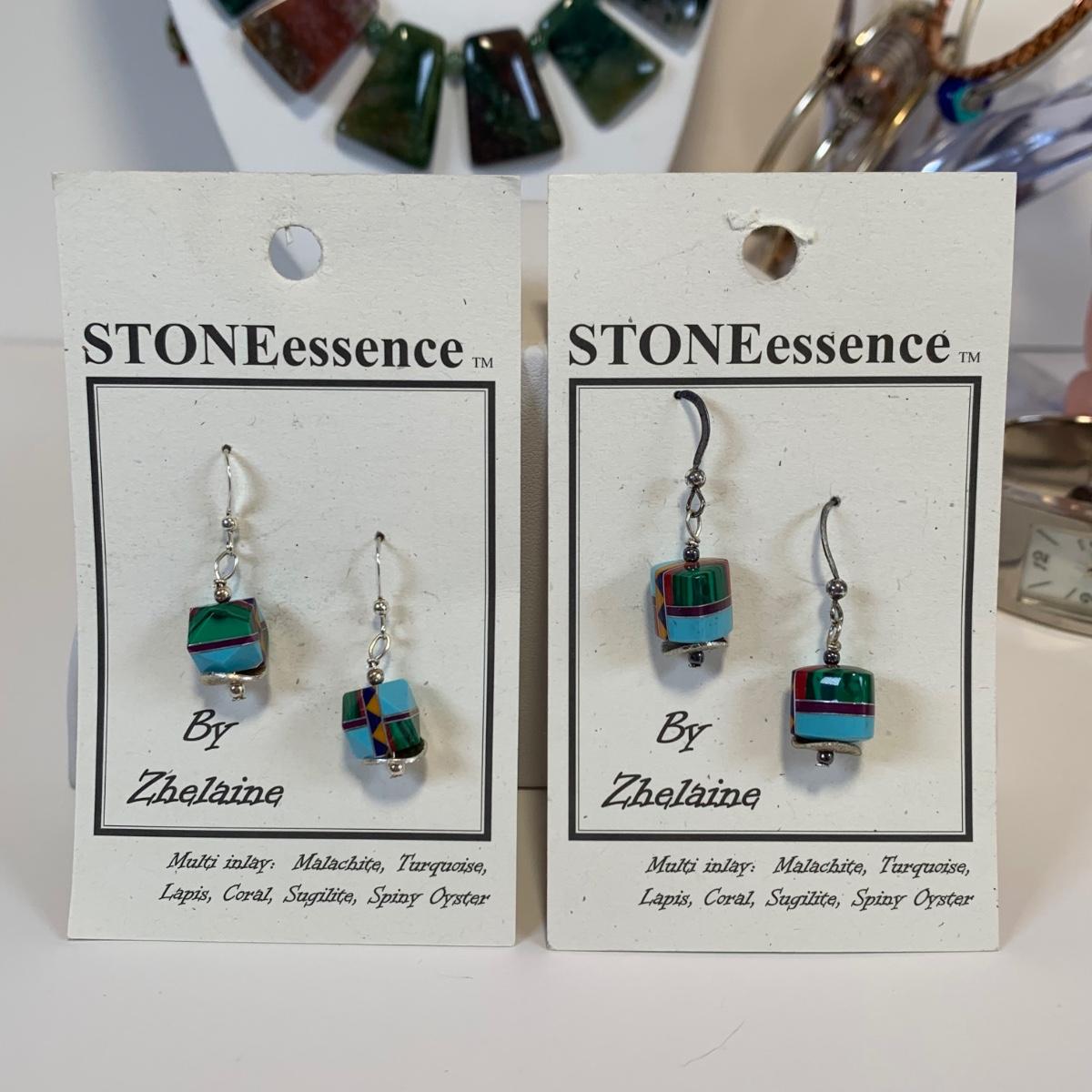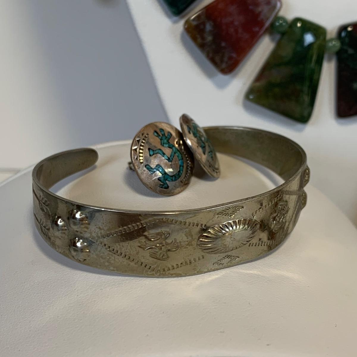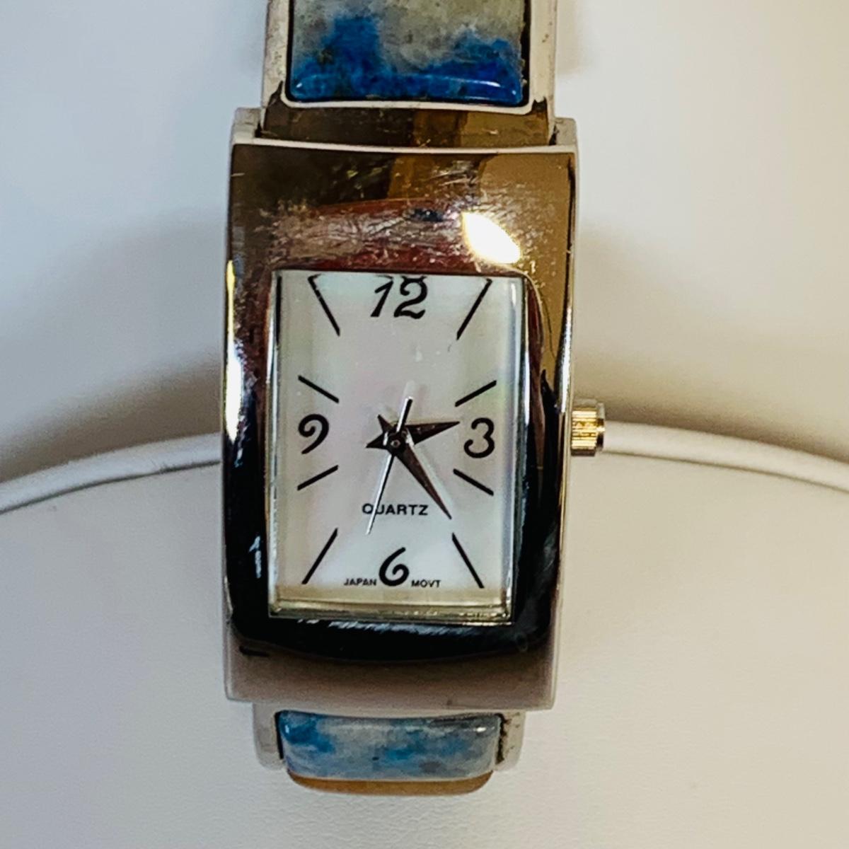 Lot 218: Fashion Jewelry Collection: Tricolor Bracelets, Nickel Silver Bracelet, Stone Essence Inlay Earrings, Watch w/Multicolored Stones & More