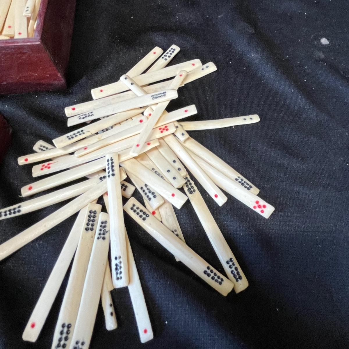 There is a more complete set like this at the Molly Brown House!!! Ivory layered on bamboo! Not complete, but has directions! This would be a great grouping for repurposing into jewelry! Can't imagine the $$$ this should bring...don't miss out!