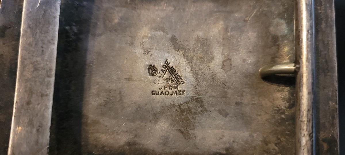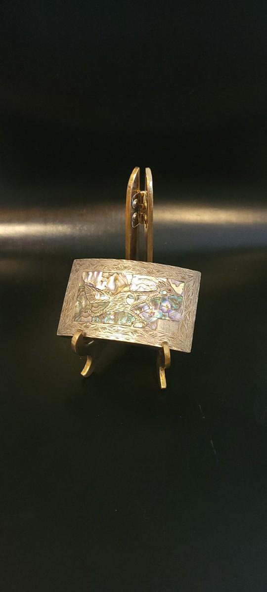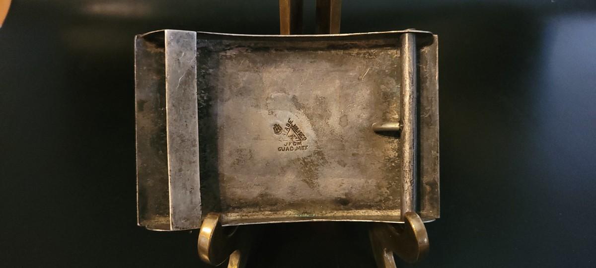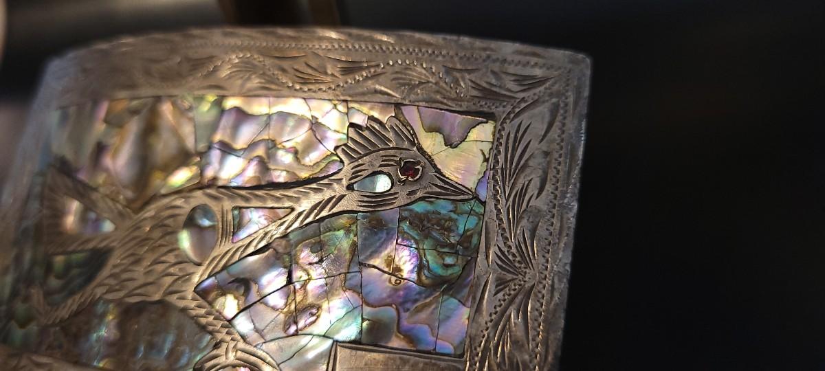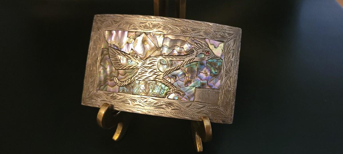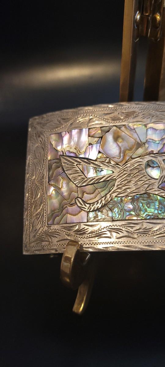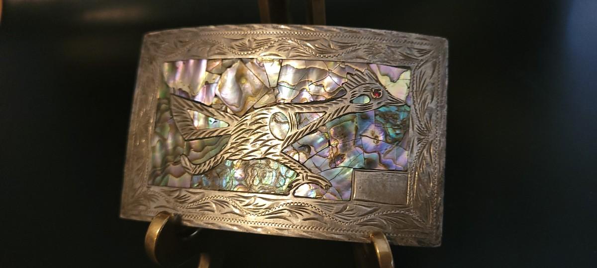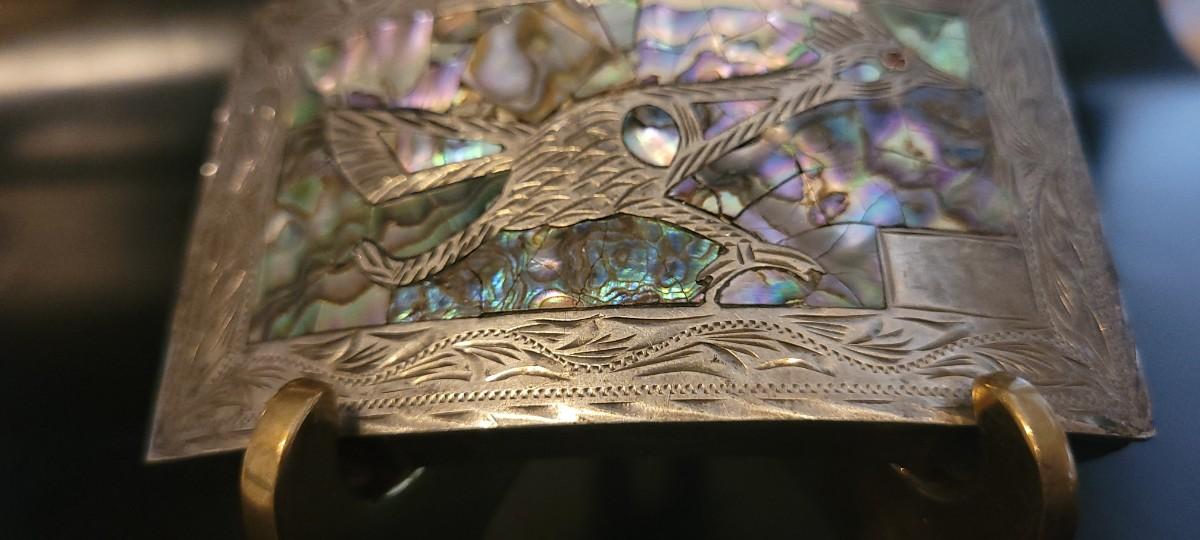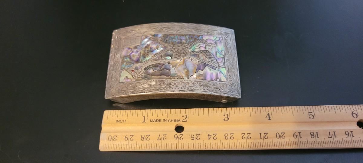 Lot 218: Vintage Sterling Silver Native American SIGNED Belt Buckle Abalone Shell