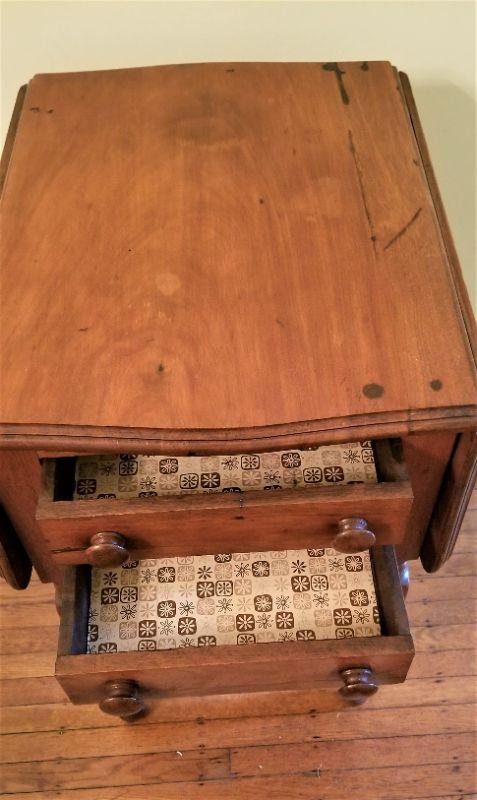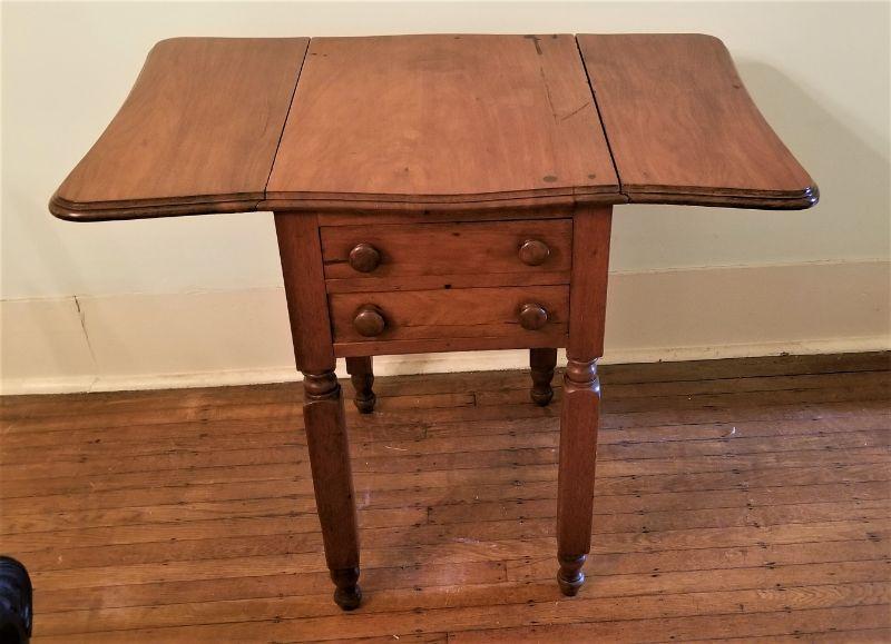 Lot #218 Antique Drop Leaf Table with 2 drawers - 19th century