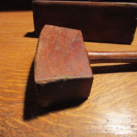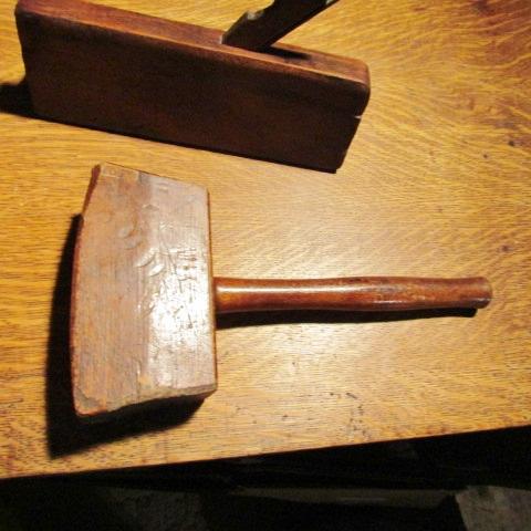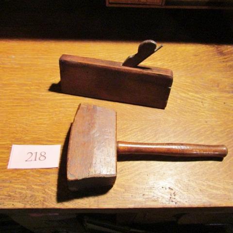 LOT 218 ANTIQUE WOODEN PLANE AND MALLET
