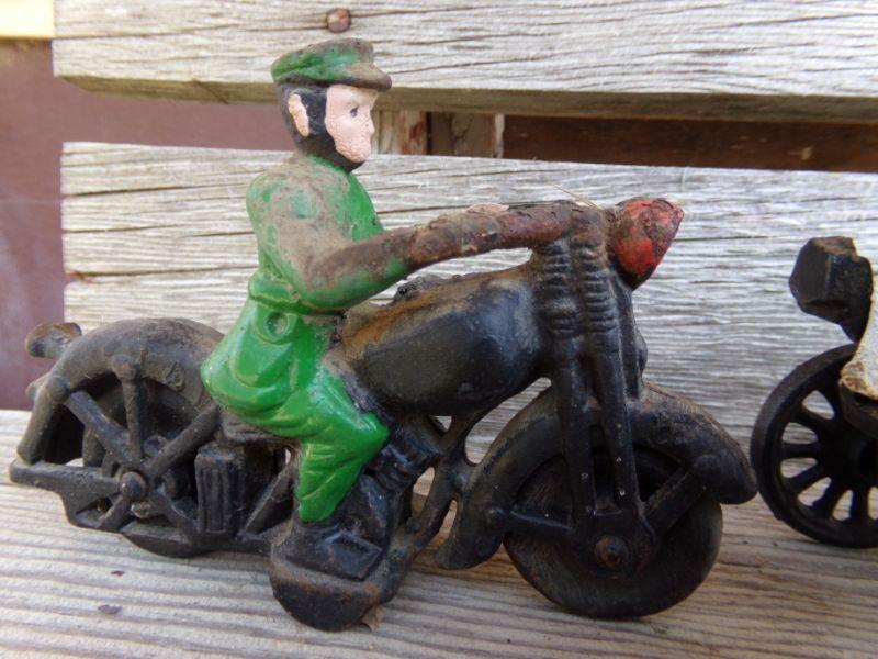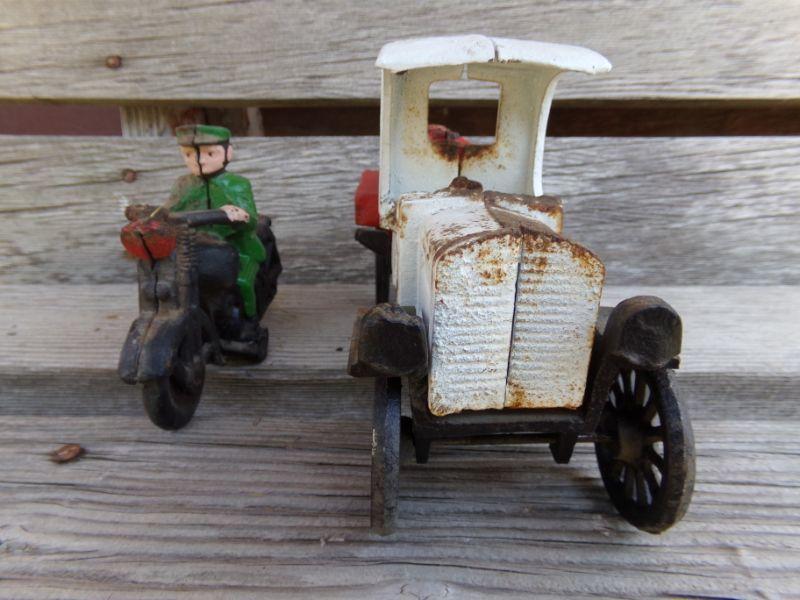 LOT 218  CAST IRON MOTORCYCLE COP AND TRUCK