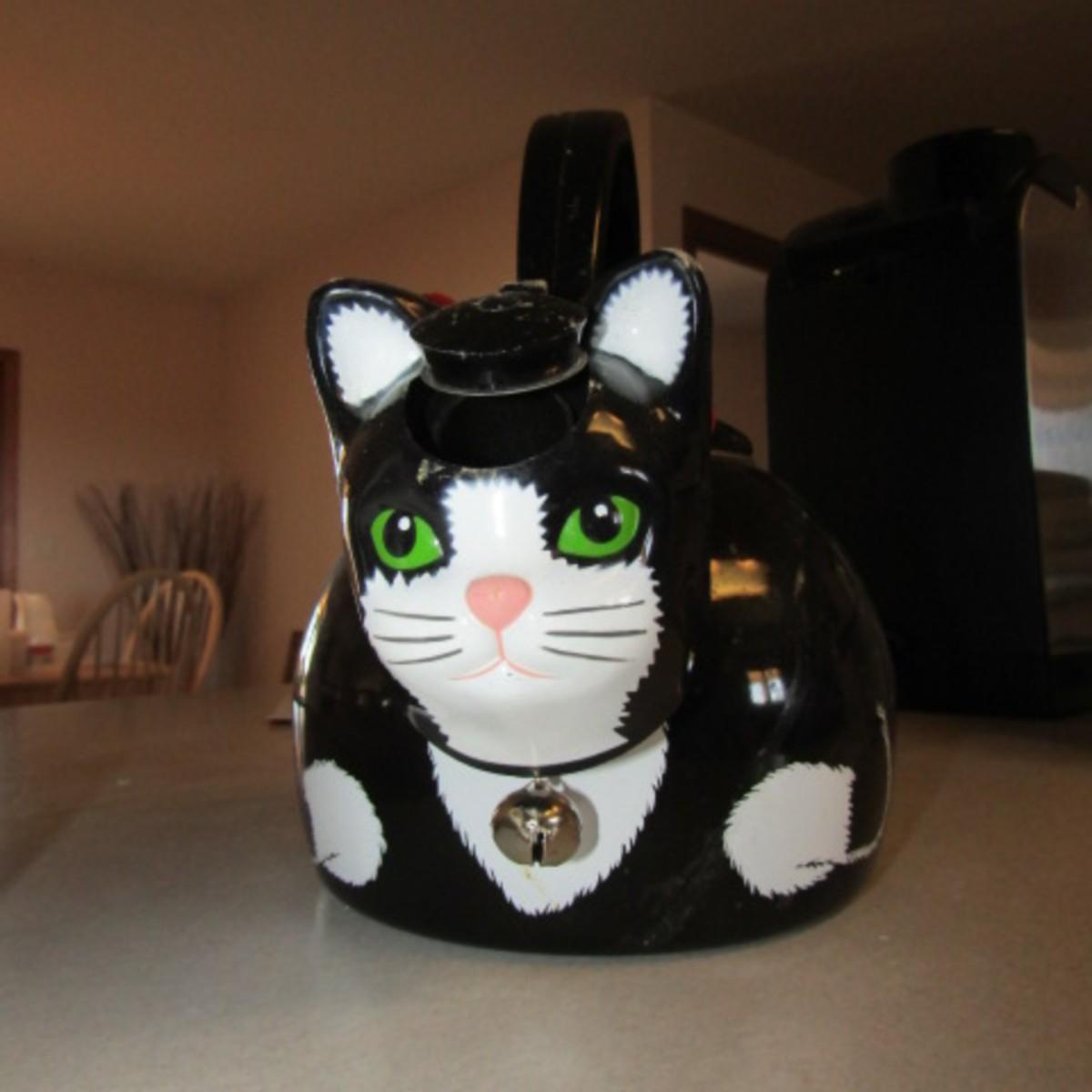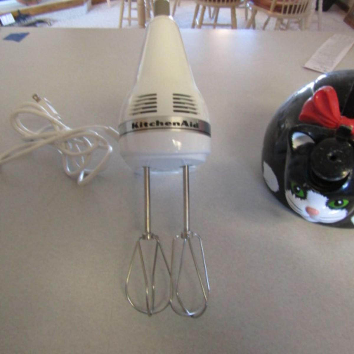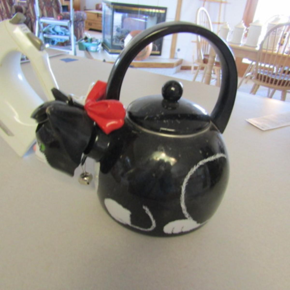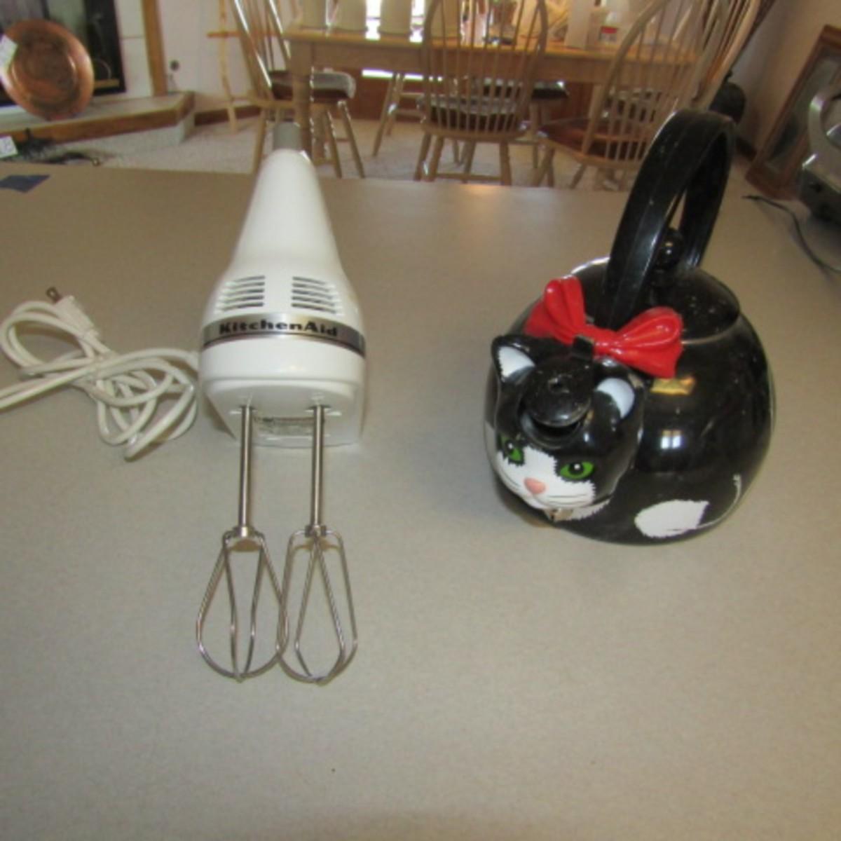 LOT 218  KITCHEN AID HAND MIXER AND A KITTY CAT TEA KETTLE (E)