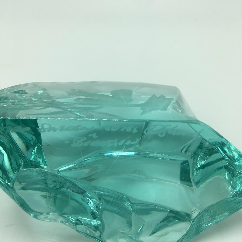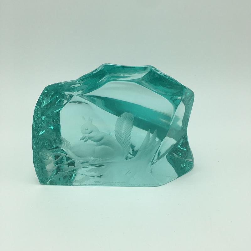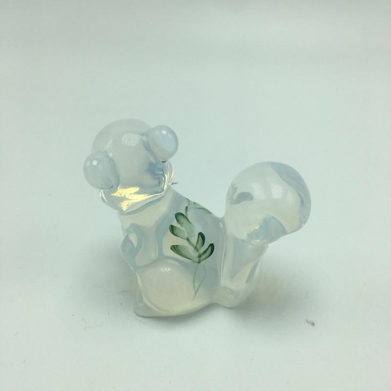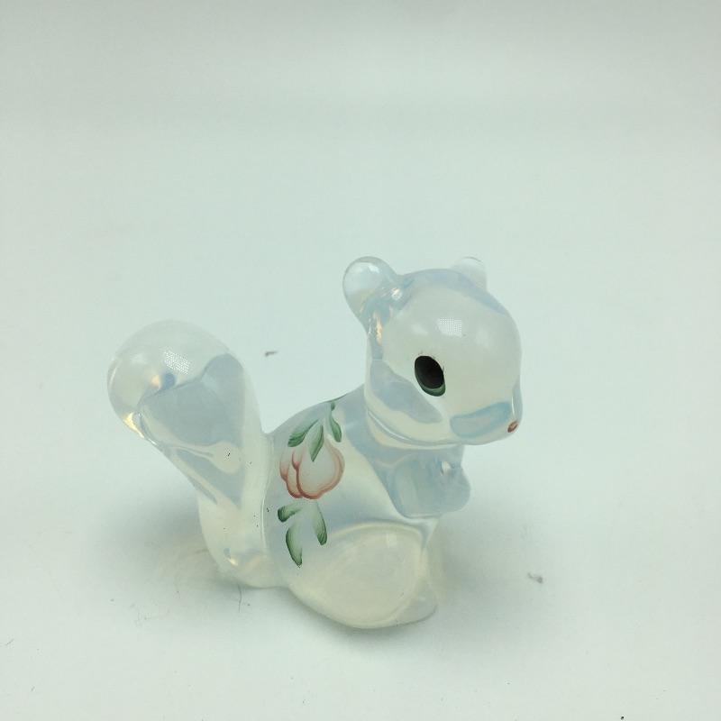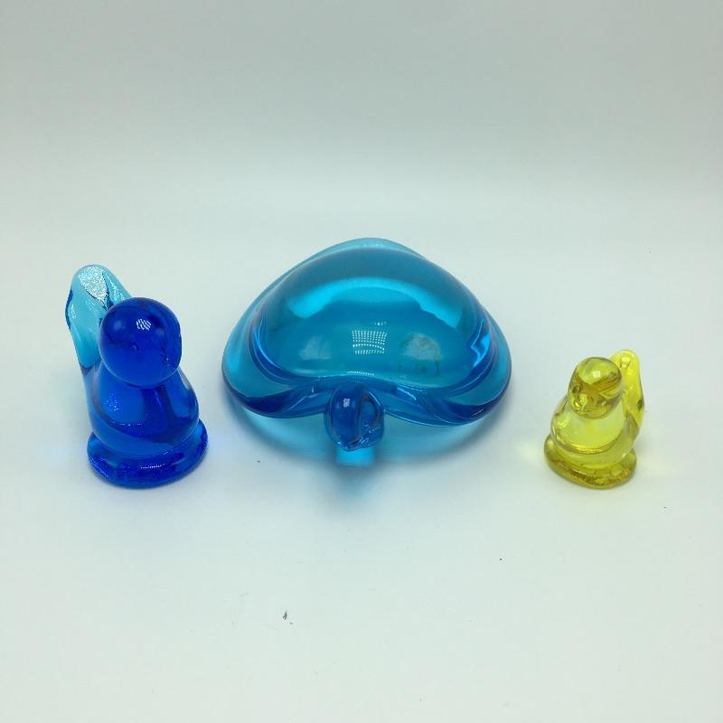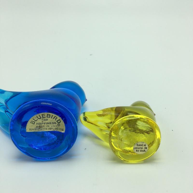 Glass animals includes a bluebird, yellow bird, blue turtle, opaque signed squirrel, glass with etched squirrel that is signed and spiral colored glass. Turtle measures 6.5” x 4.75” x 2.25”.