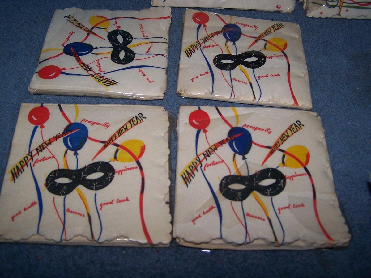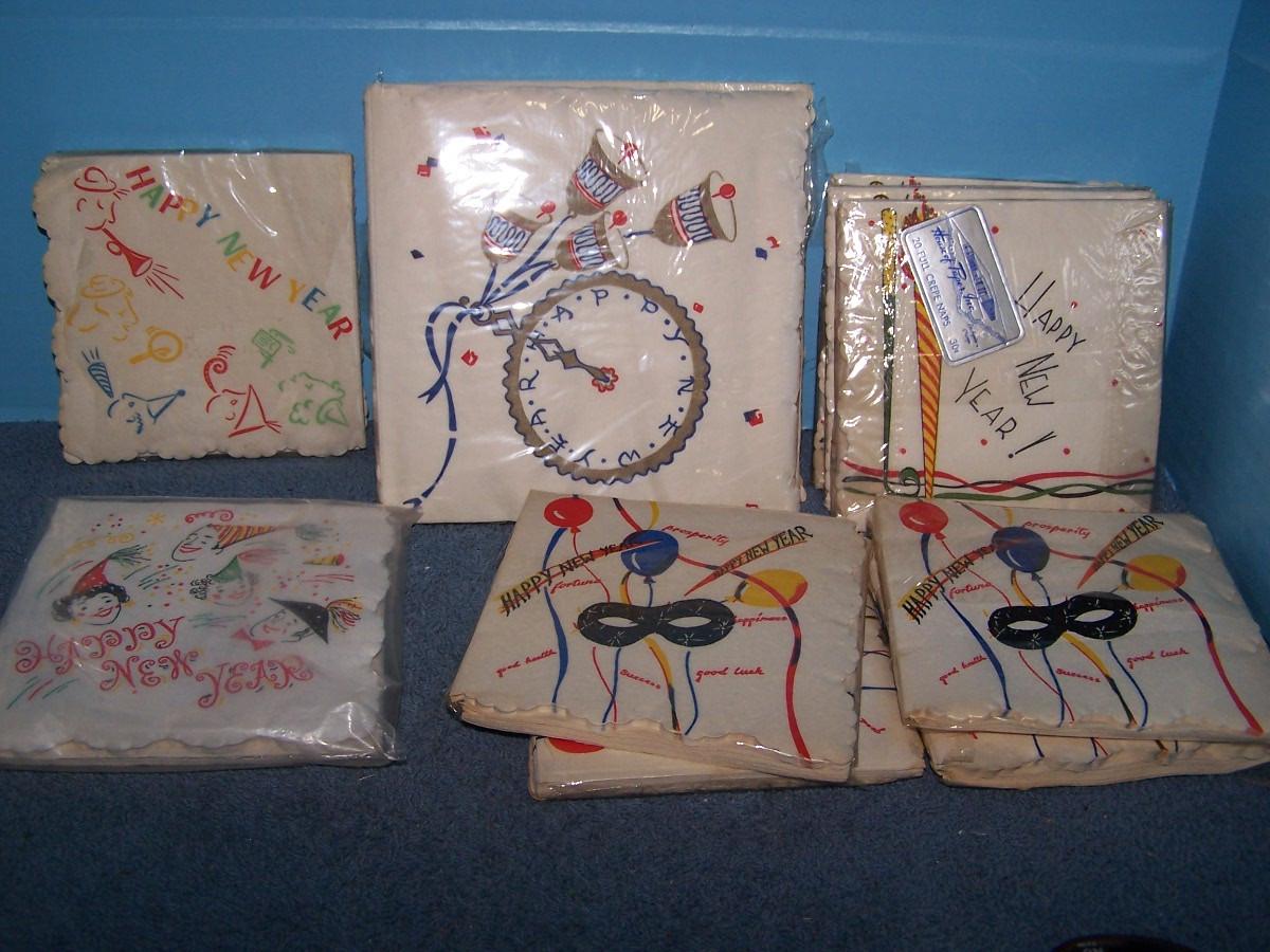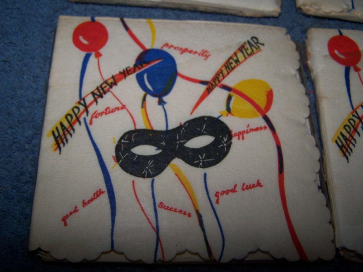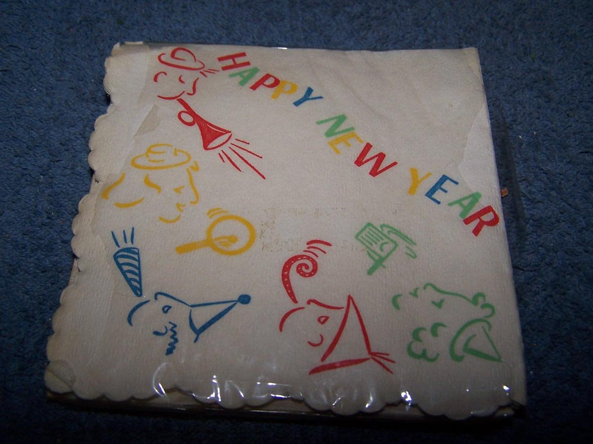 THESE ARE GREAT VINTAGE MCM HOUSE OF PAPER HAPPY NEW YEAR NAPKINS!!! SEVERAL OPEN/CELLOPHANE TORN, UNUSED..