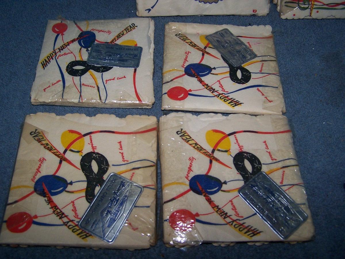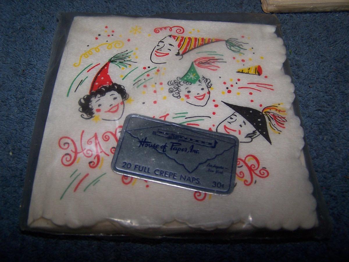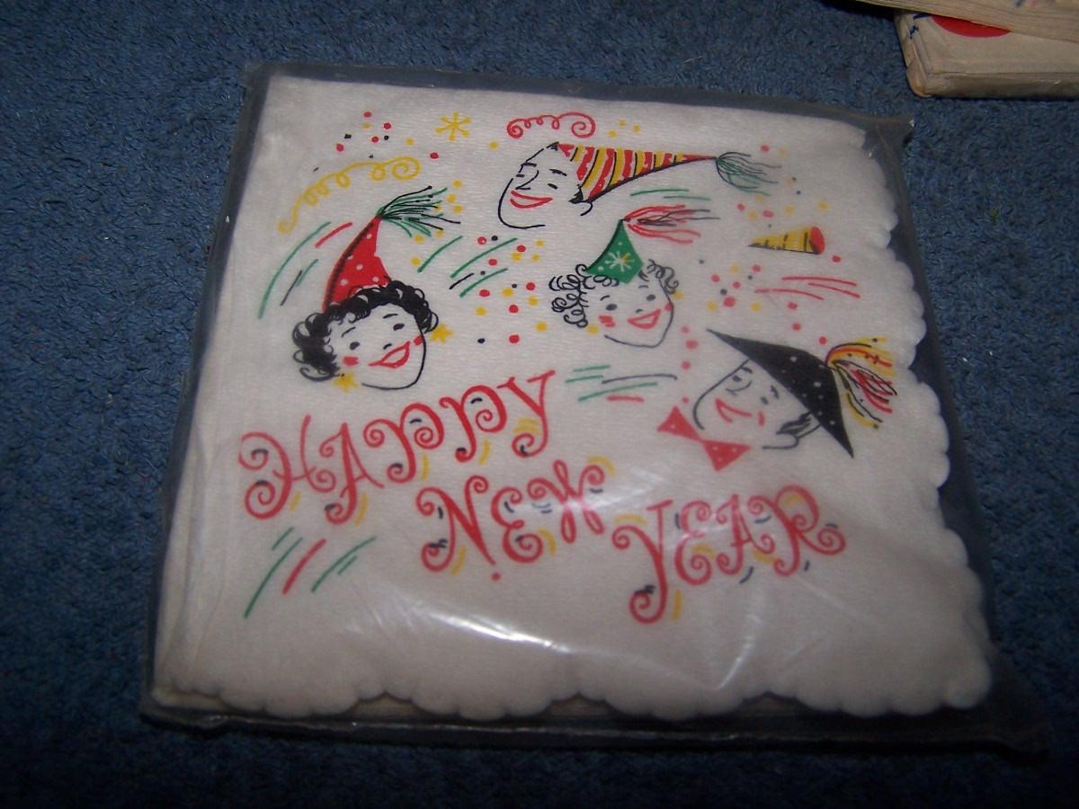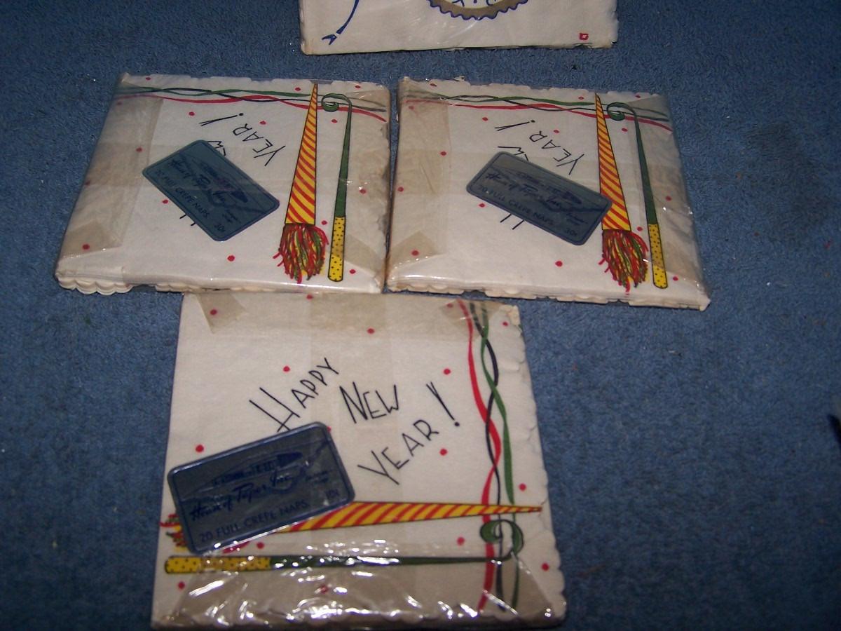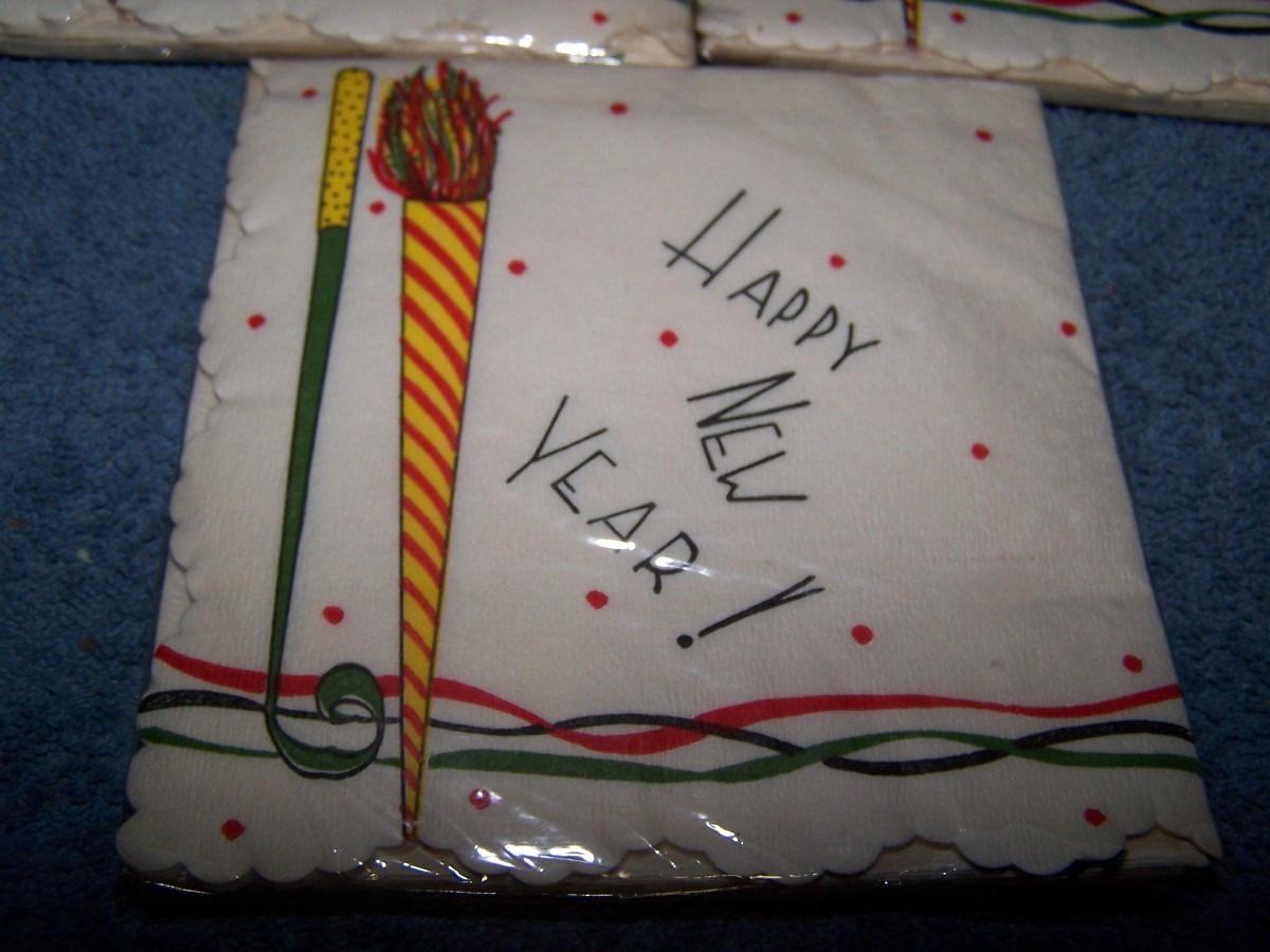THESE ARE GREAT VINTAGE MCM HOUSE OF PAPER HAPPY NEW YEAR NAPKINS!!! SEVERAL OPEN/CELLOPHANE TORN, UNUSED..