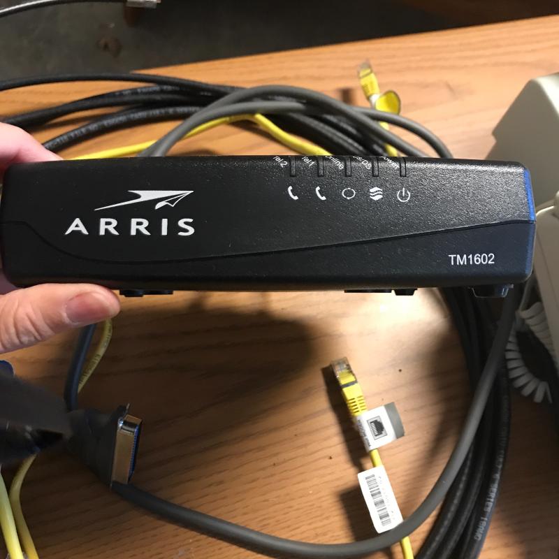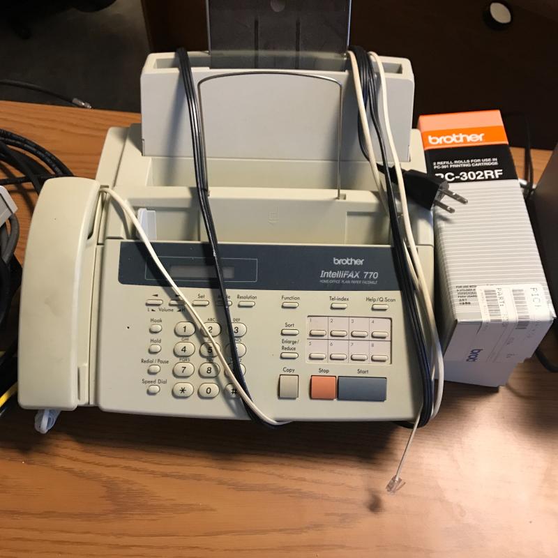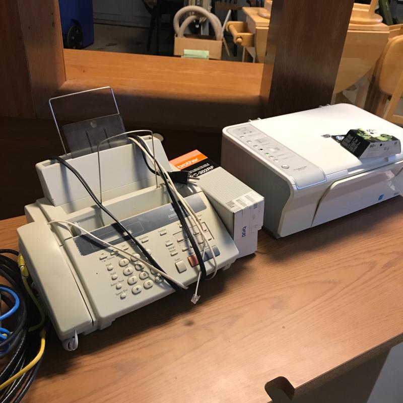 HP Deskjet F4280 All-in-One Oribter with extra black ink cartridge. Does not include electrical cord. Fax Machine by Brother IntelliFAX 770 with four extra refill rolls for printer cartridge. An Arris Modem with cords and two wall Netgear Ethernet Adapters with cords. Can not verify working condition of any of these items. No shipping. Local pick up in Asheville, NC only.
