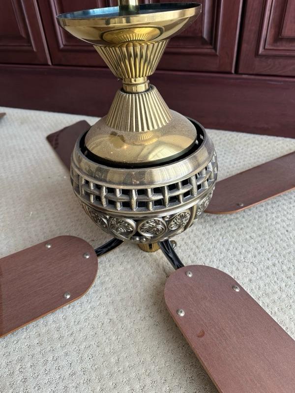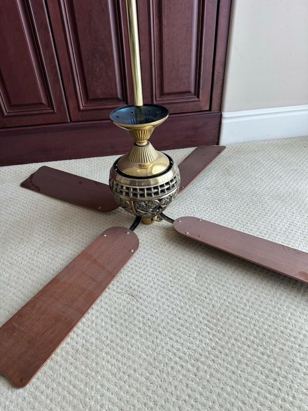 Hunter ceiling fan with extension pole fan is 4’4” across and was recently removed from a home during a remodel