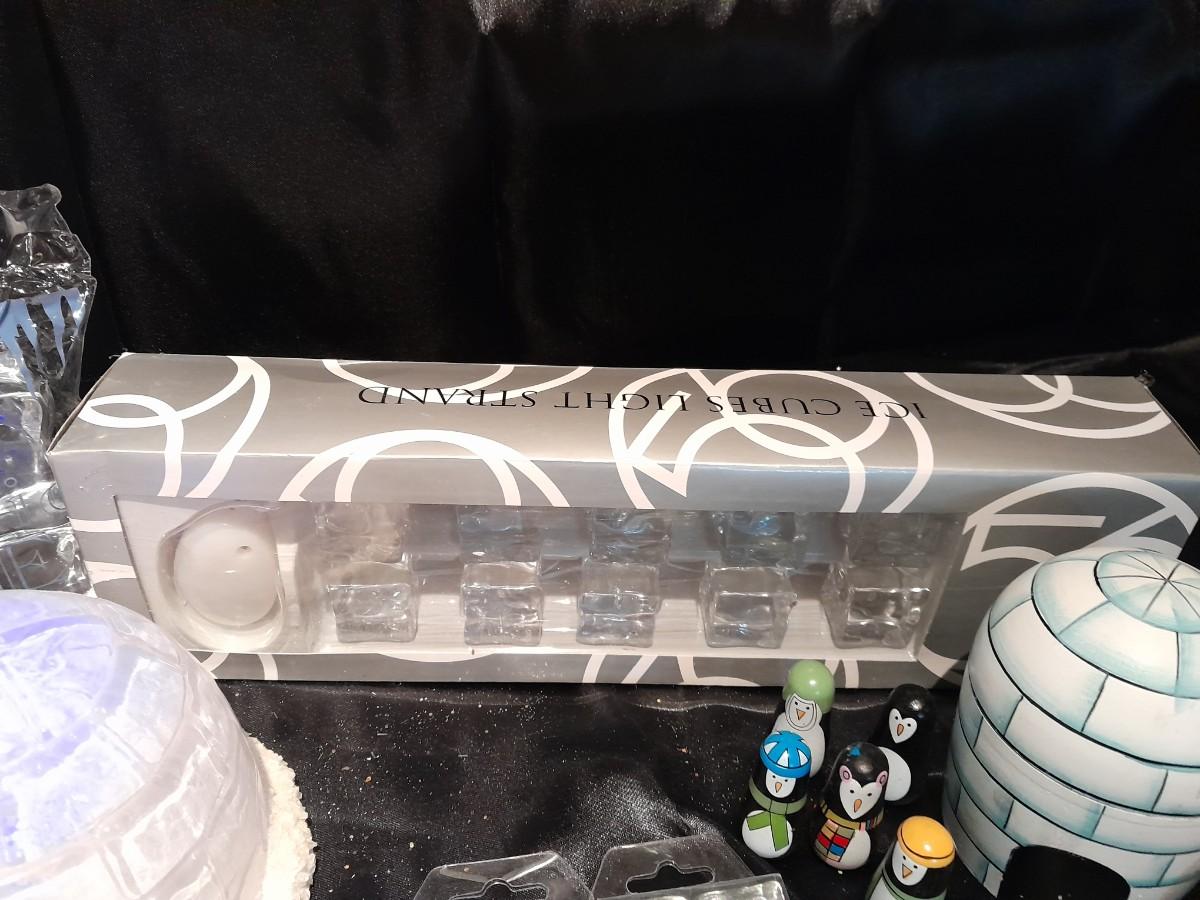 LOT 218 ICE CUBE LIGHTS, IGLOO AND OTHER ICE THEME CHRISTMAS ITEMS