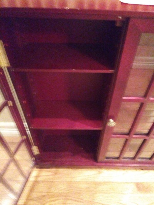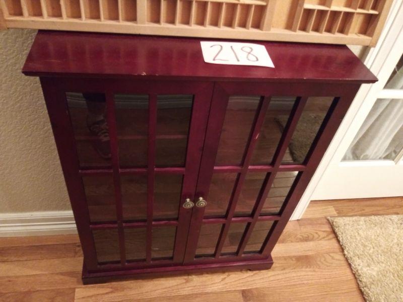 CABINET IS PERFECT FOR DISPLAYING YOUR SMALLER ITEM COLLECTION. IT MEASURES 32"X8"X32". THE DOORS HAVE PLEXIGLAS AND YOU CAN HANG IT ON A WALL OR LEAVE IT ON THE FLOOR