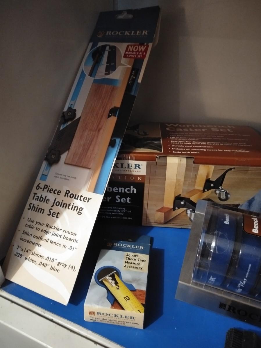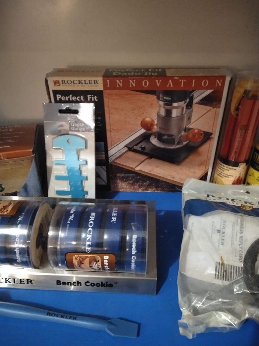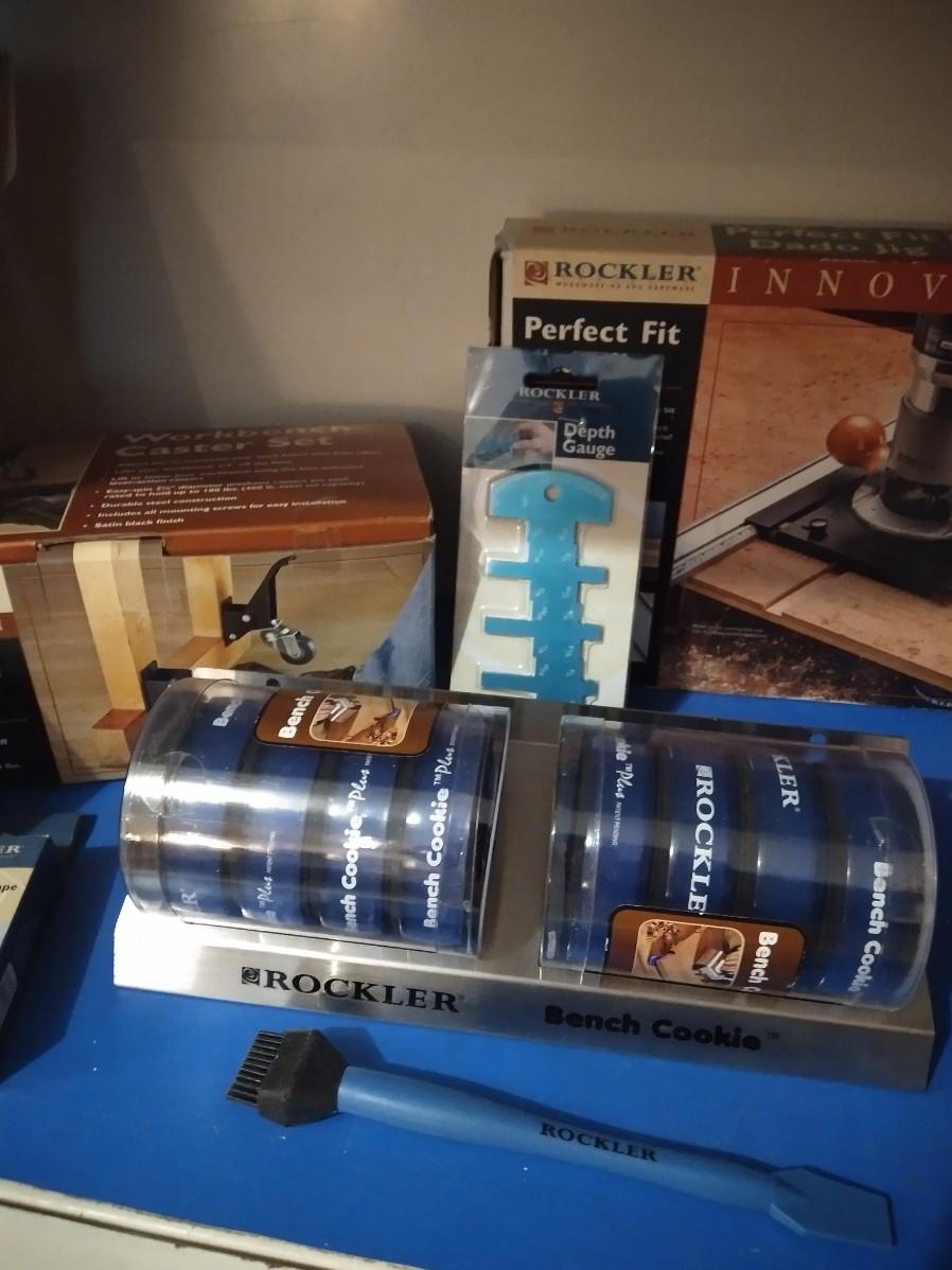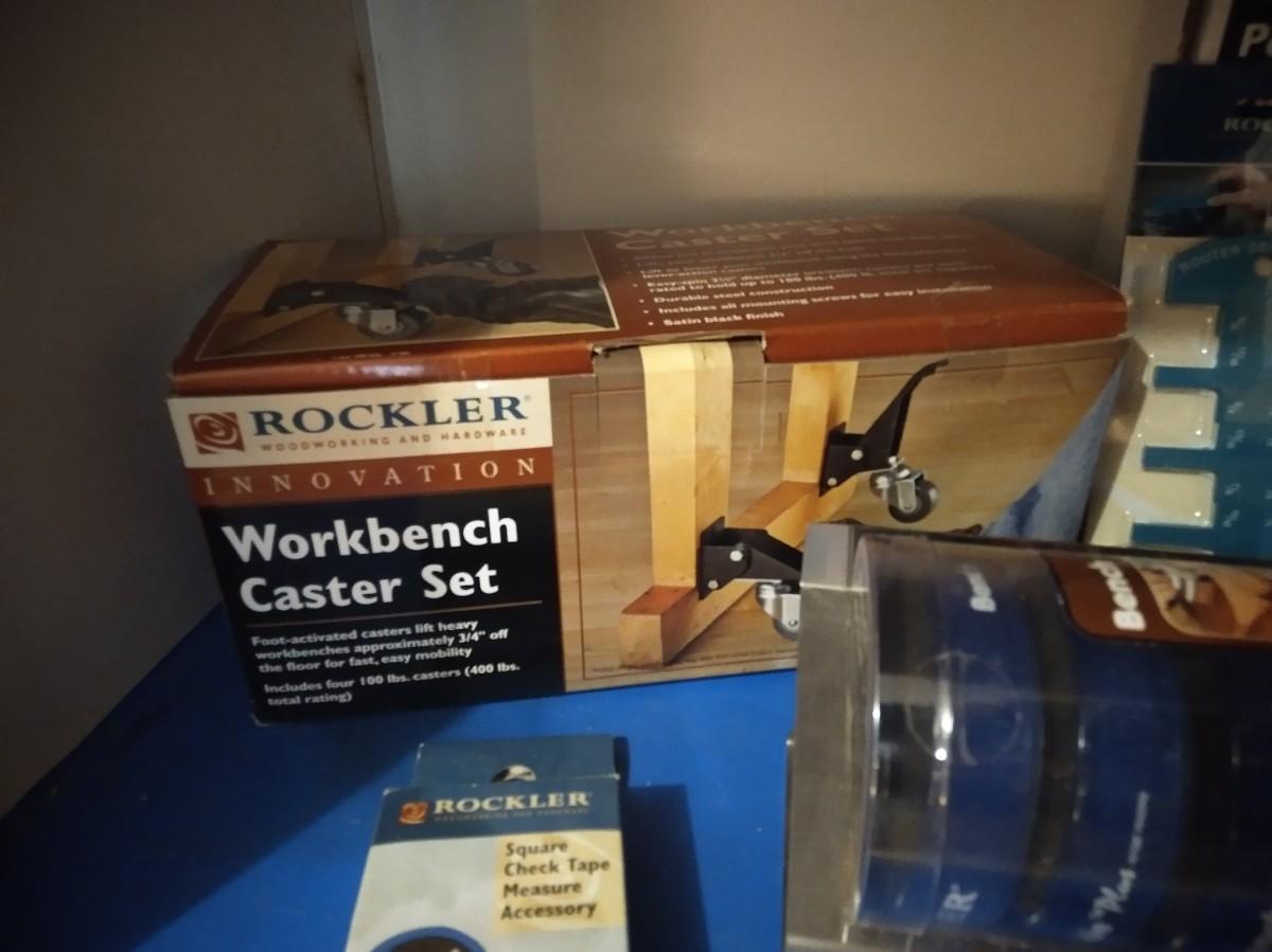 ROCKLER WOOD WORKING TOOLS, BENCH COOKIES, CHALK LINE CHALK, PROJECT DADO JIG, WORKBENCH CASTERS, AND MORE