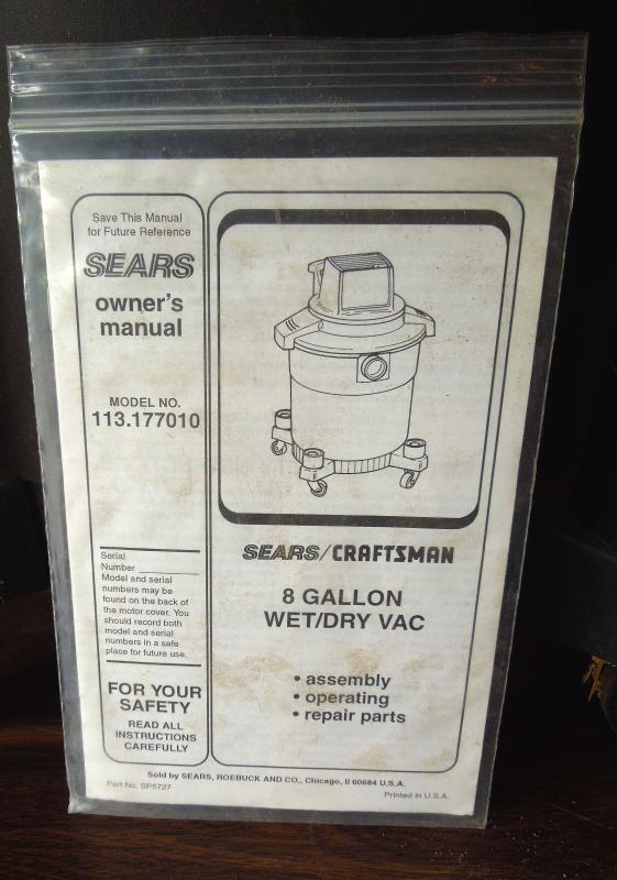 8 Gallon Wet Dry Shop Vac Model 113.177010.Two hose attachments. Includes manual. Also included is an older model osciallating 3 speed fan.