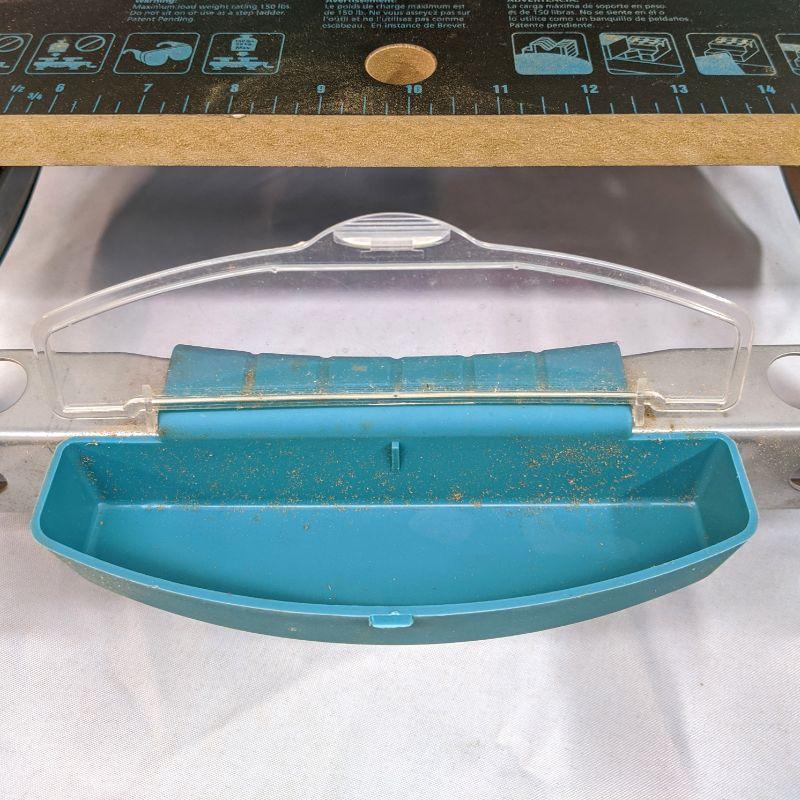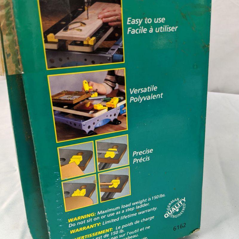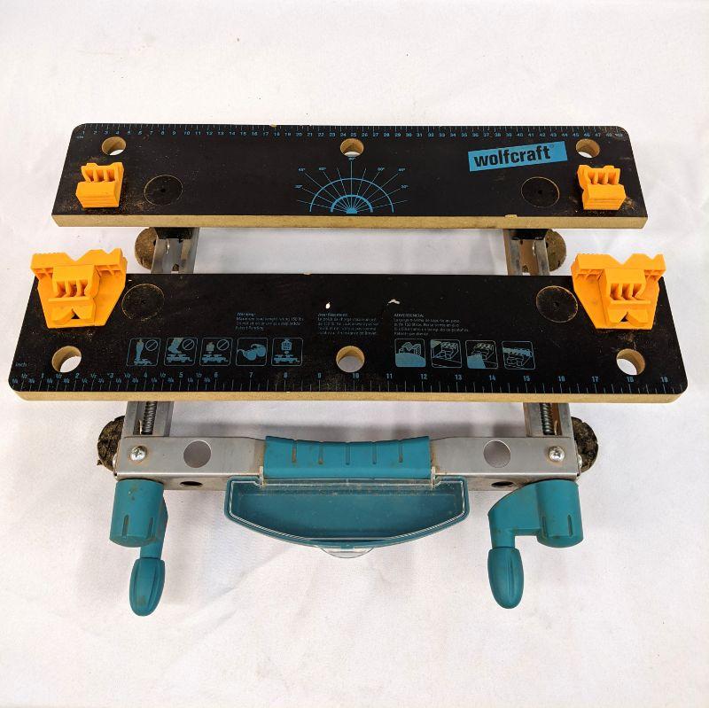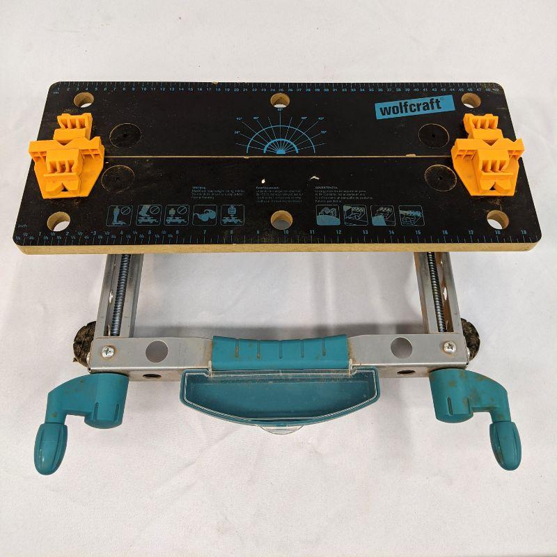 This craft table made by Wolfcraft is extremely versatile and useful. It has a large clamping range and multifunctional benchdogs to hold work pieces of all types, shapes, and sizes. It's lightweight and stores easily. There's also a lidded tool tray attached at the front.