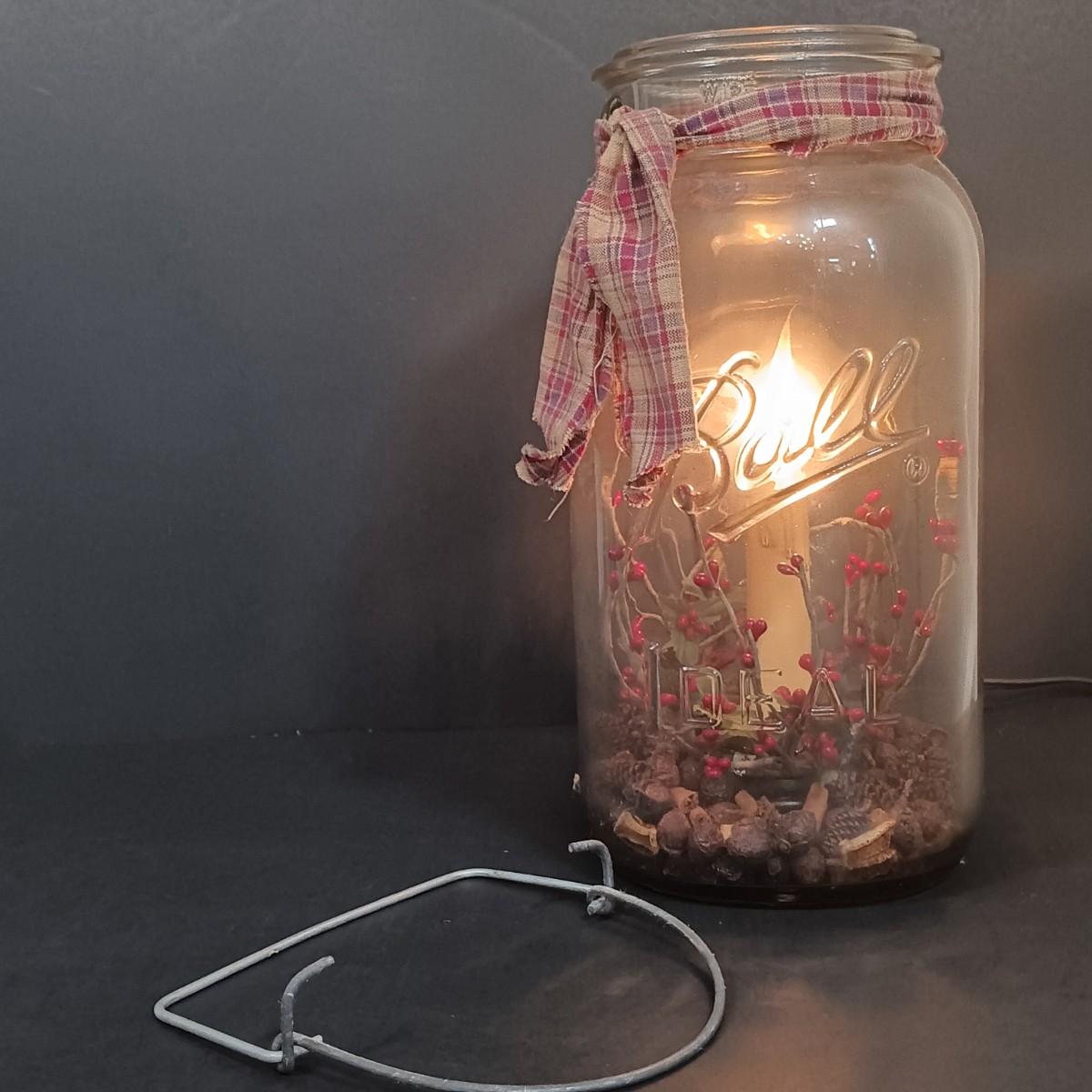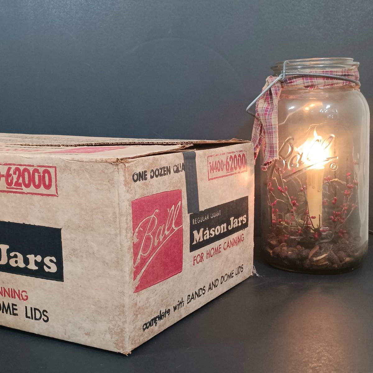LOT 218D: Set of Unopened Ball Regular Quart Mason Jars w/ Mason Jar Lamp