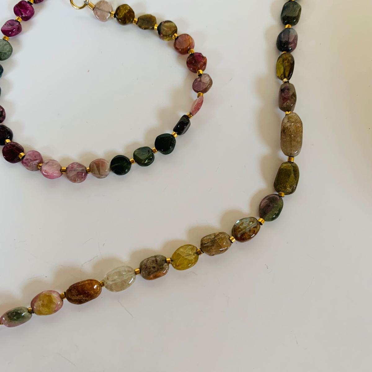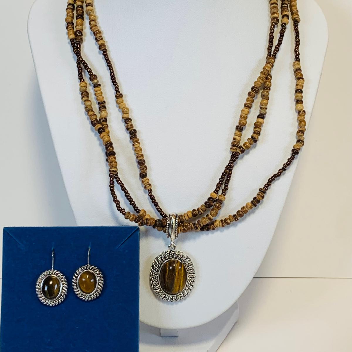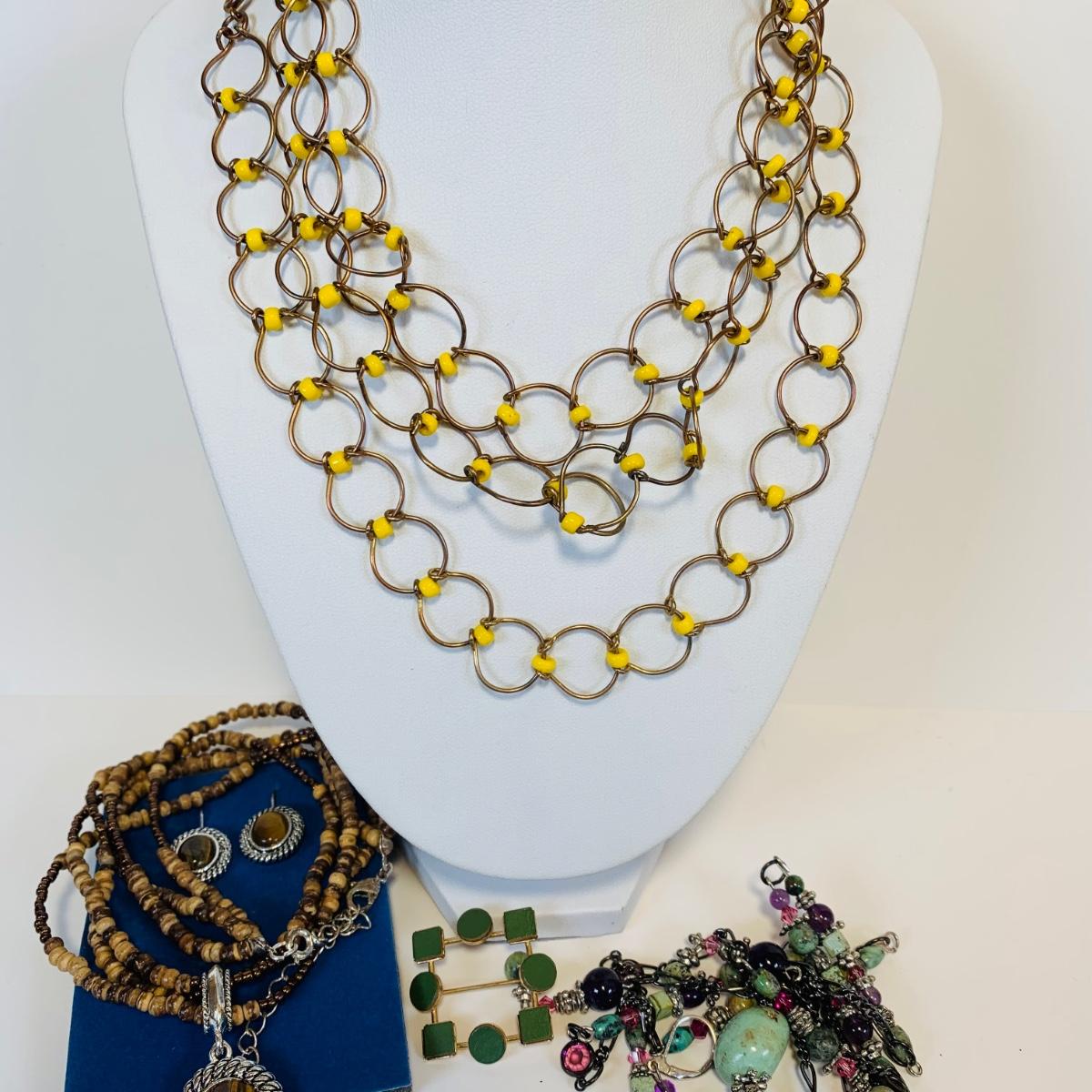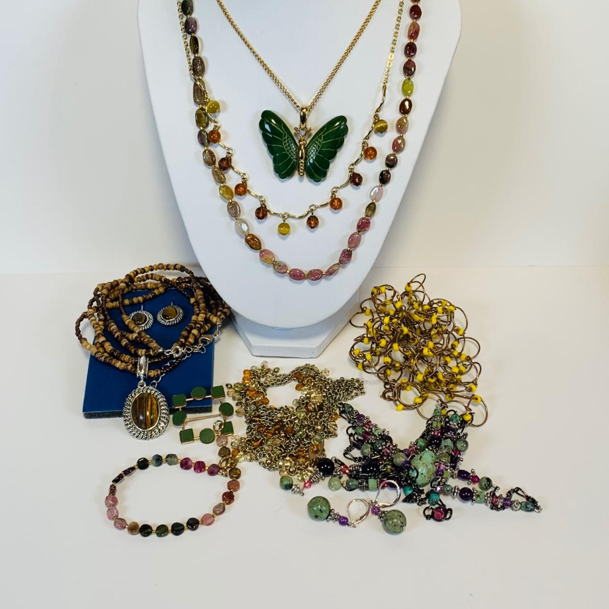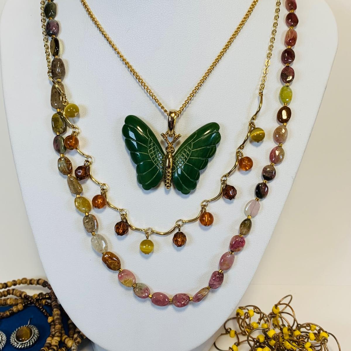 Lot 219: Goldtone & Beaded Necklaces, Multi Color Stone Necklace w/Matching Bracelet, Wrap Around Beaded Necklace w/Matching Earrings & More