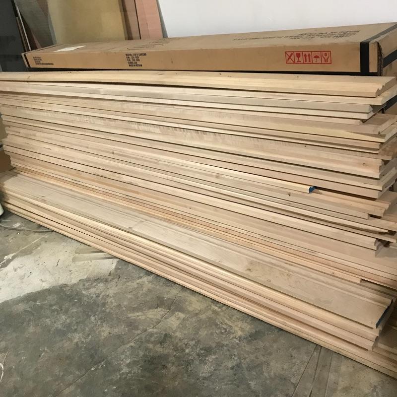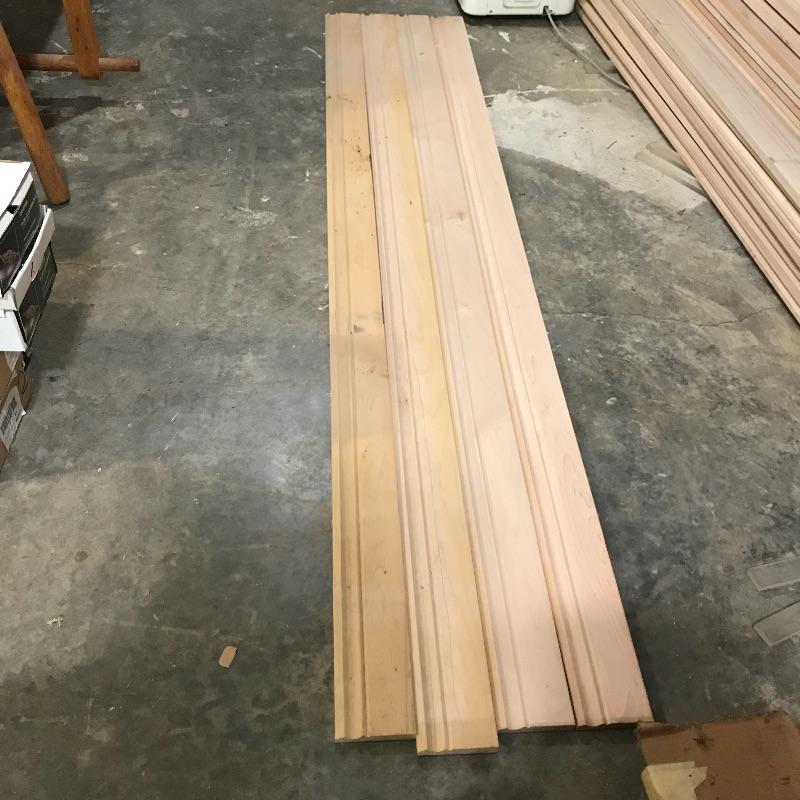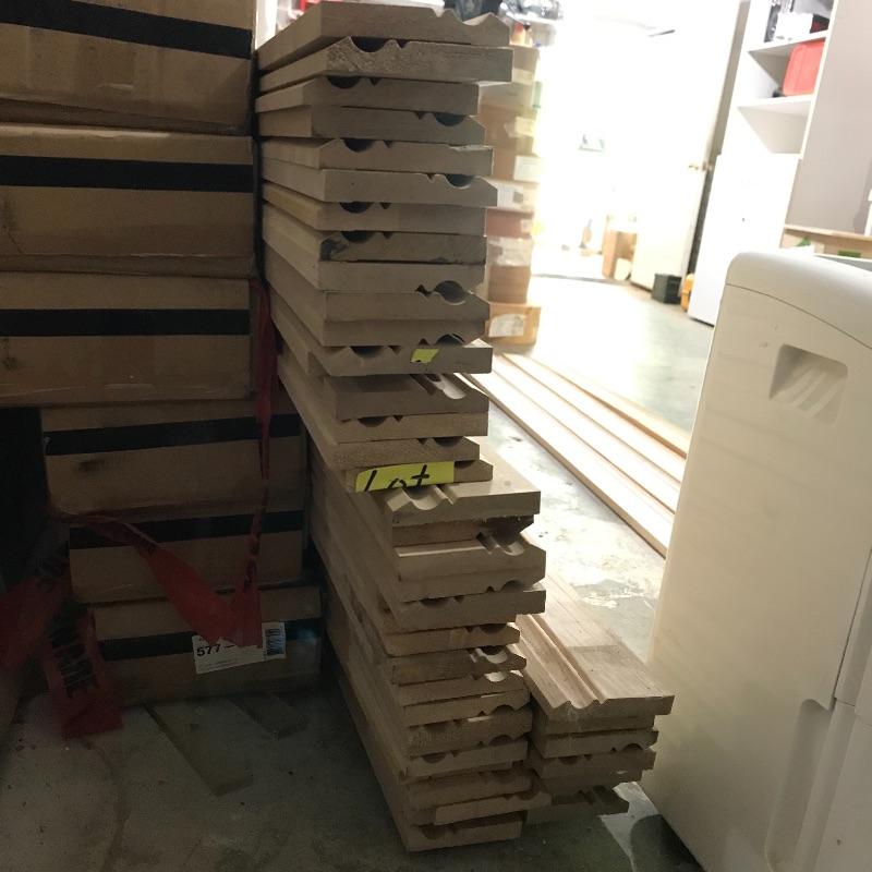 About fifty planks of naked base board moulding. Most pieces are 8’ x 4.5”, some are a foot or so shorter, see photos. No shipping.