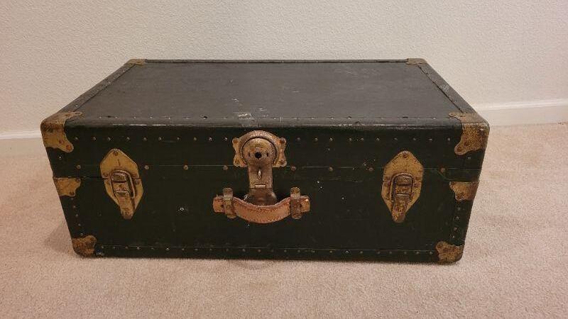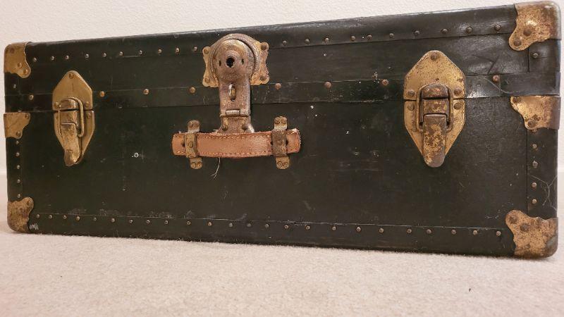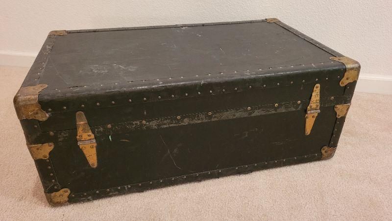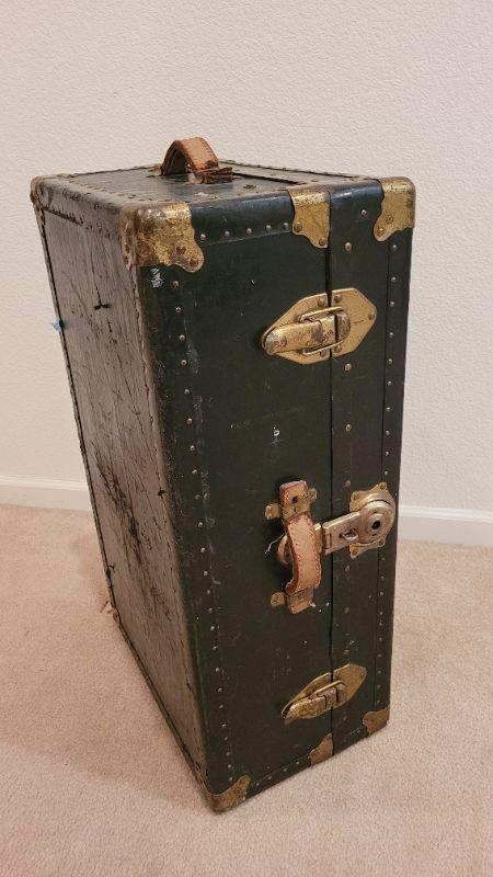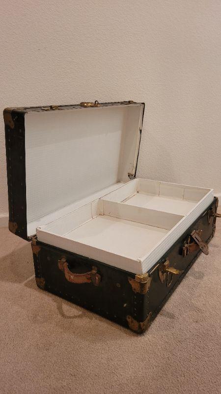 Lot 219: Vintage Storage Trunk w/ Original Thick Leather Handles