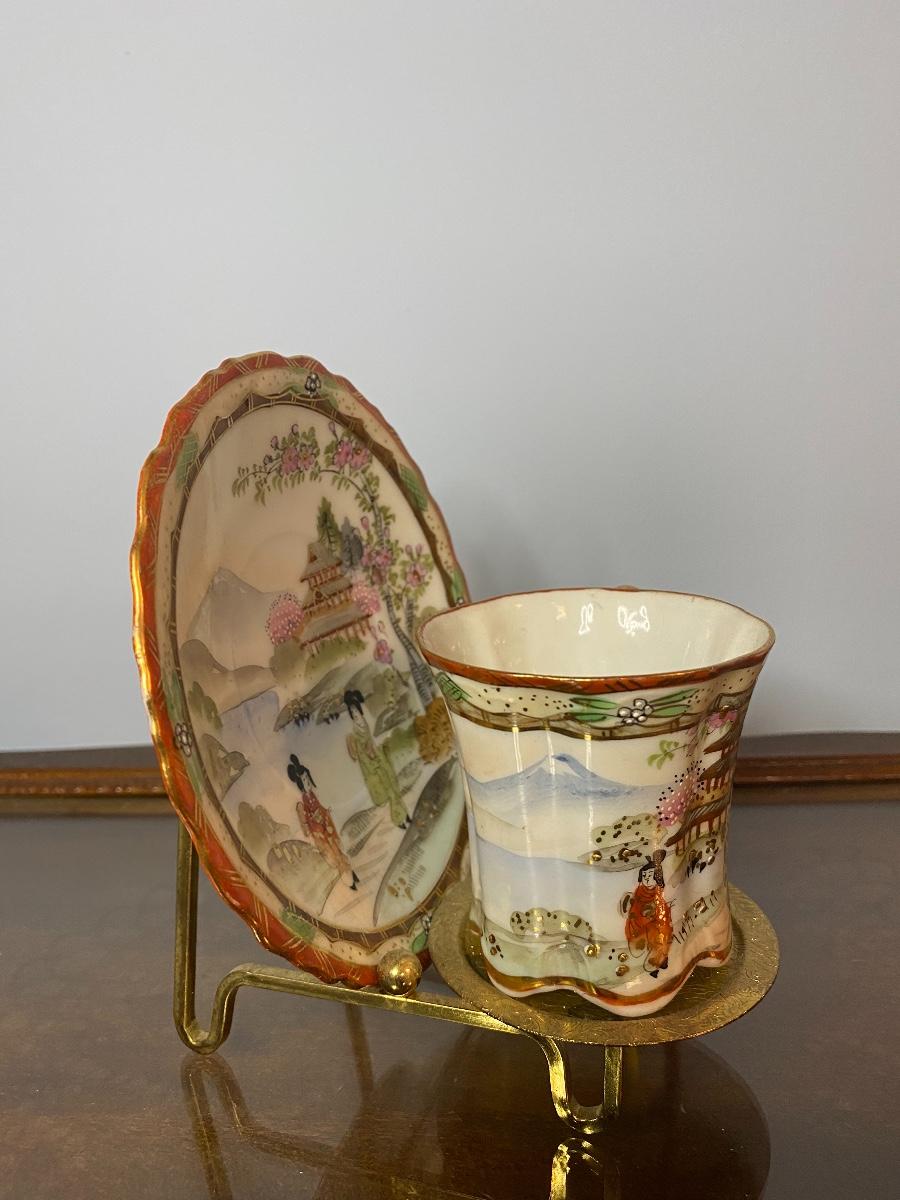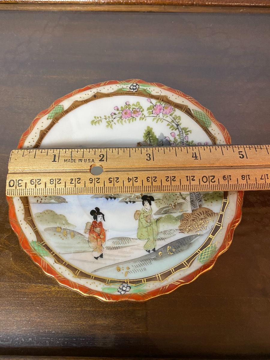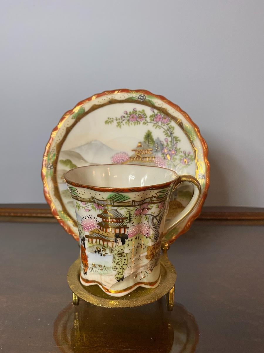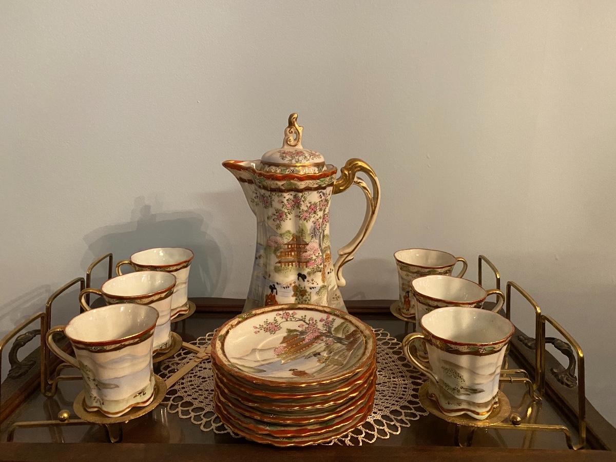 Vintage Nippon hot chocolate/tea set with six cups and plates with stands. Please see all pictures as they are the best representation of the items. The pictures show condition, measurements if taken, and what is included in the lot. Due to the large amount that we photograph and the time frame, we are not always able to take measurements. All items unless noted, are pre-owned and have been used. If you purchased furniture, you must bring help. We do not allow one person to carry large furniture out on their own. Bring help, tools and a truck for the safety of our client’s homes, and your personal safety. Company policy. Thank you.