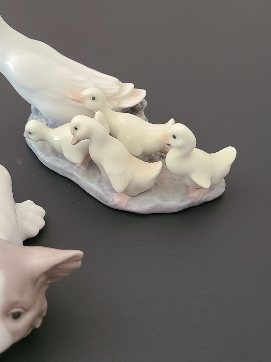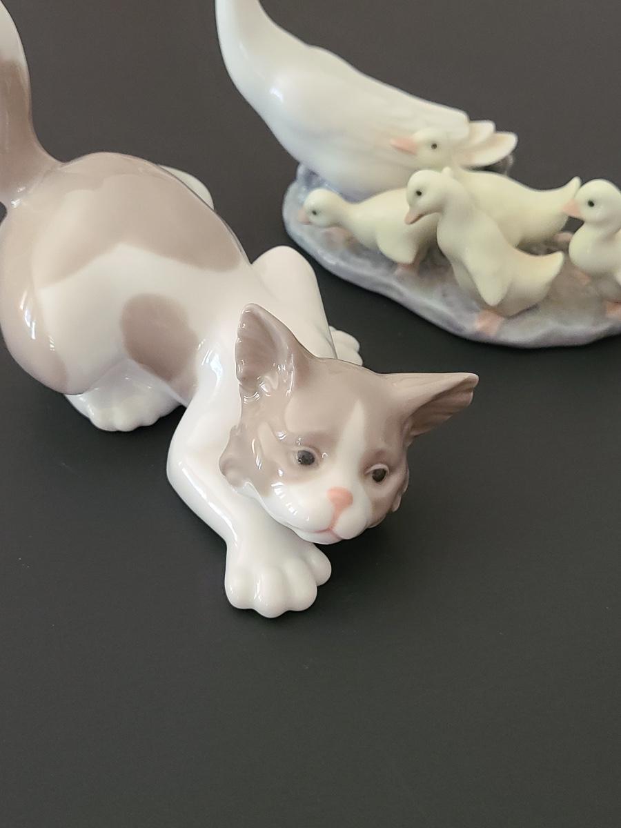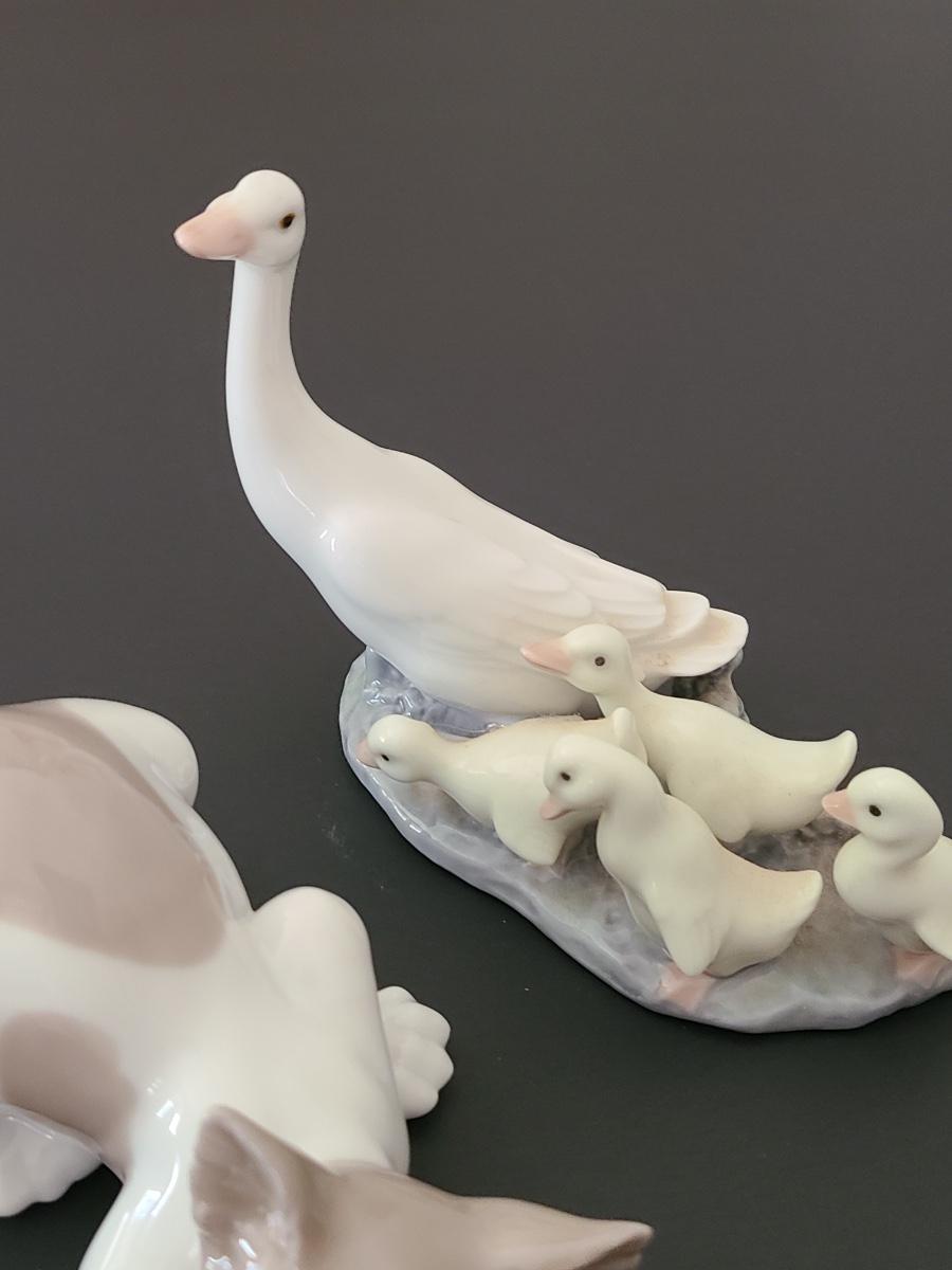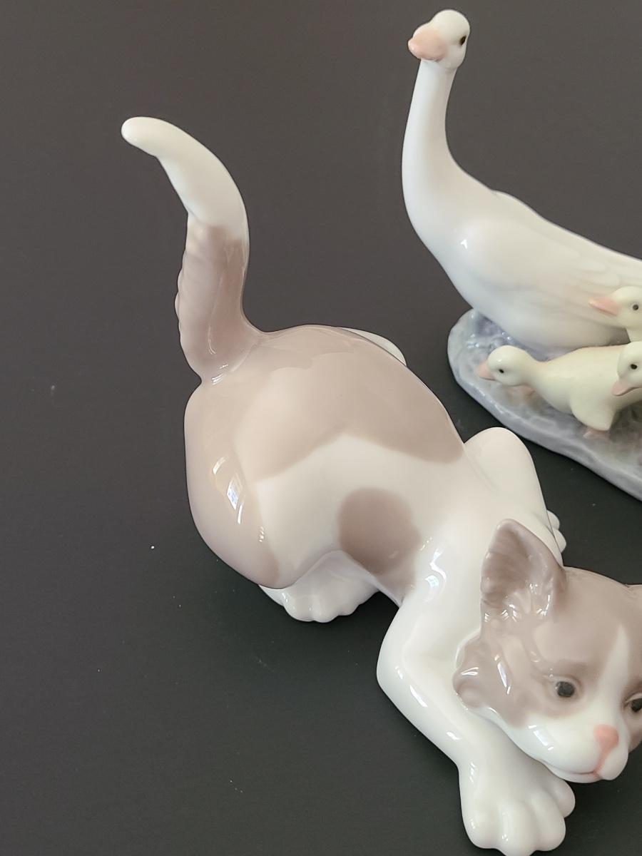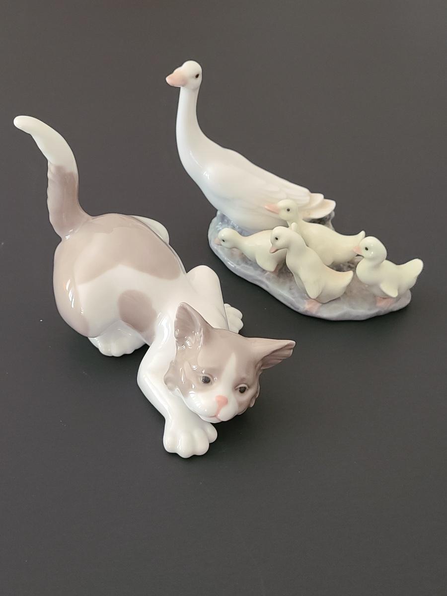 Lot 219: Lladro’s. Figures: Playful Cat and Mother Duck w/ Ducklings