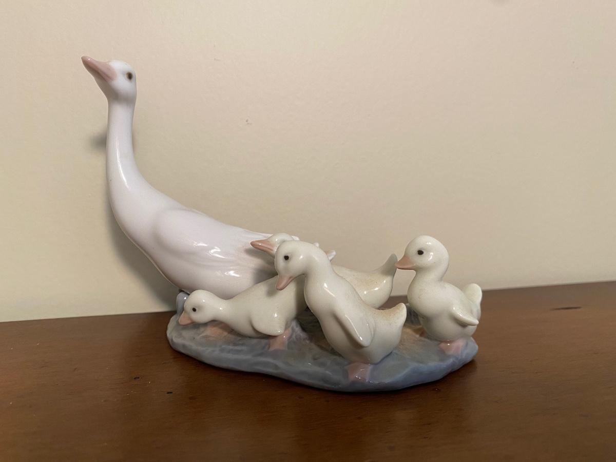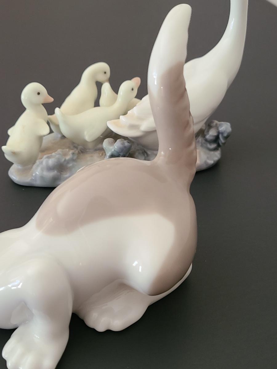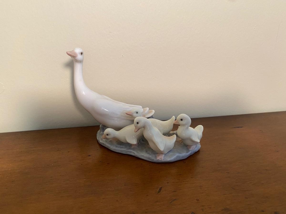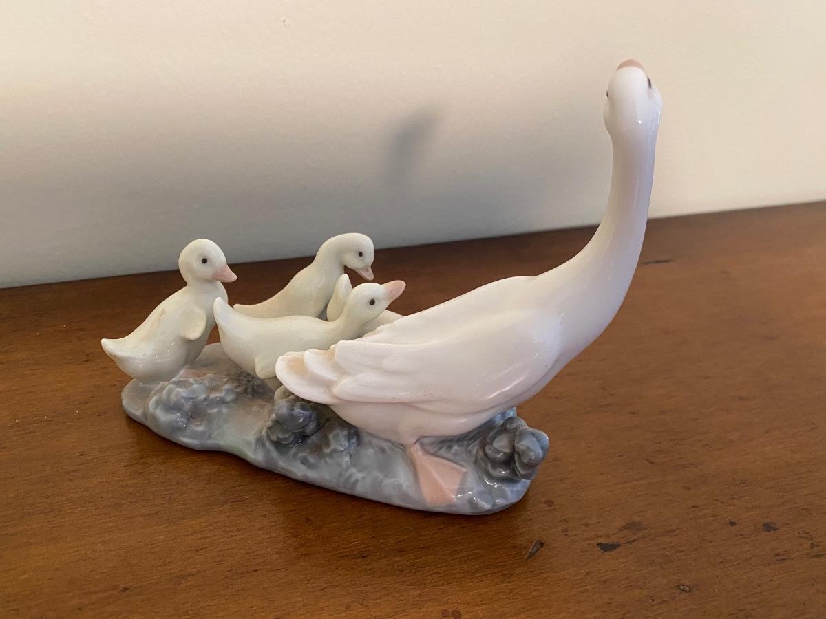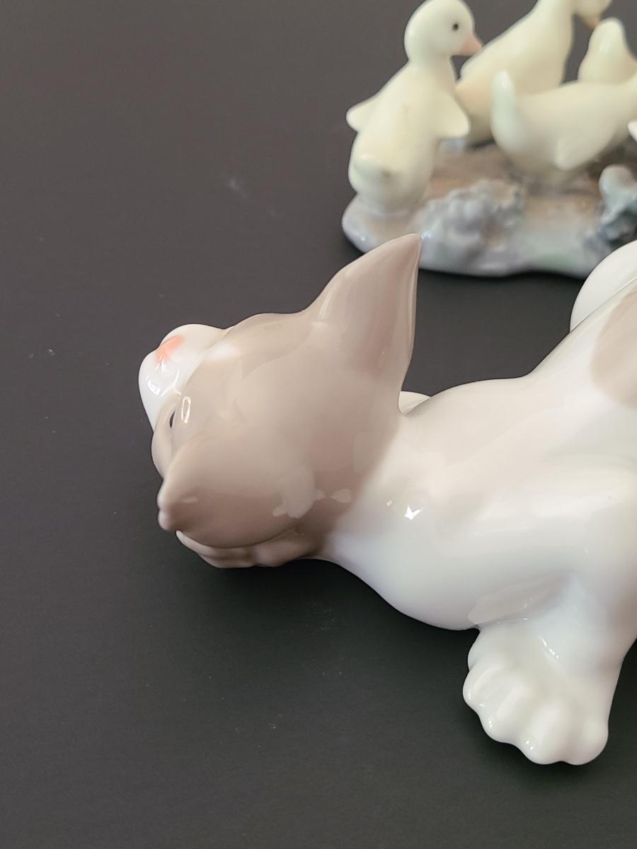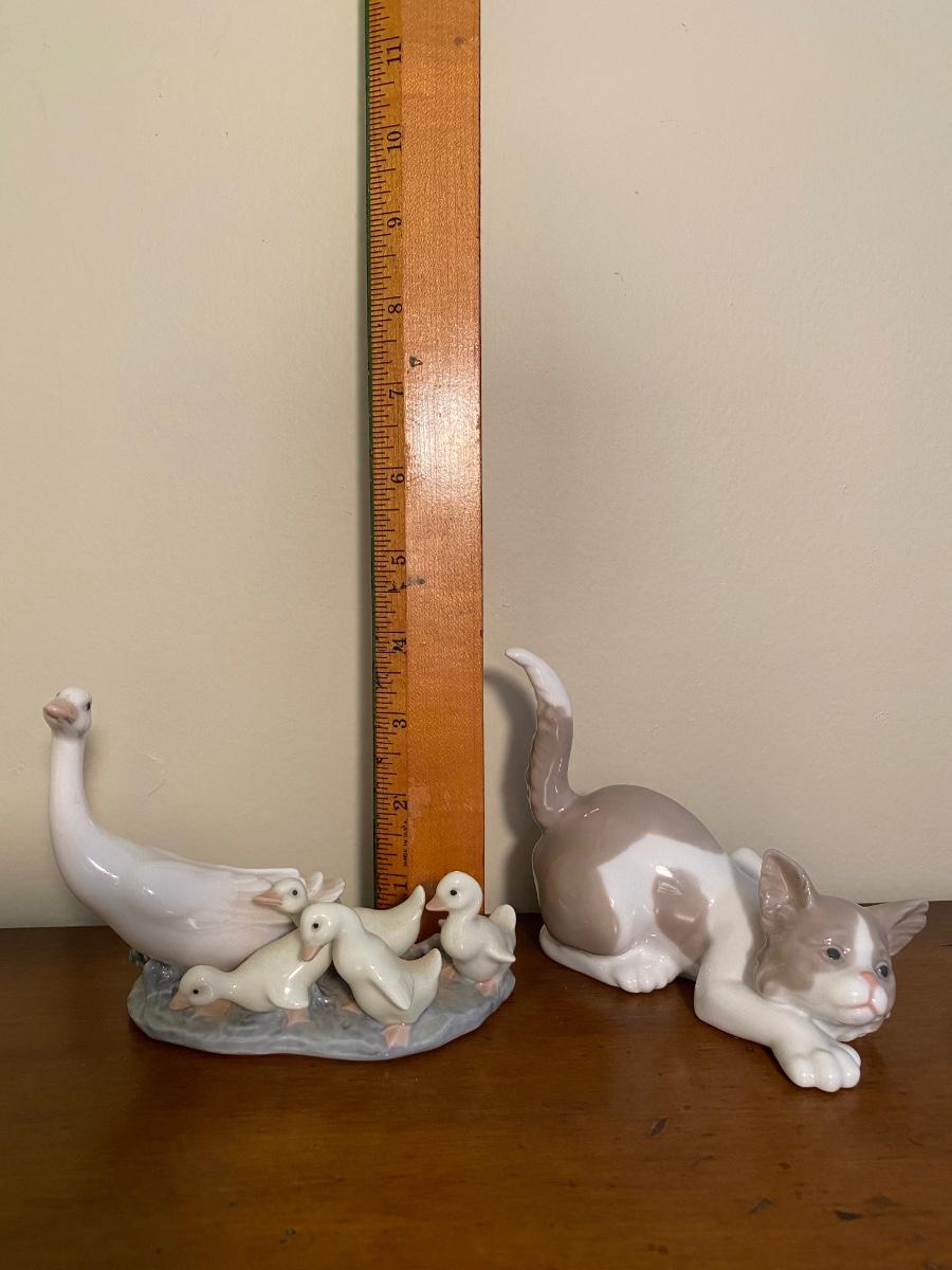Lot 219: Lladro’s. Figures: Playful Cat and Mother Duck w/ Ducklings