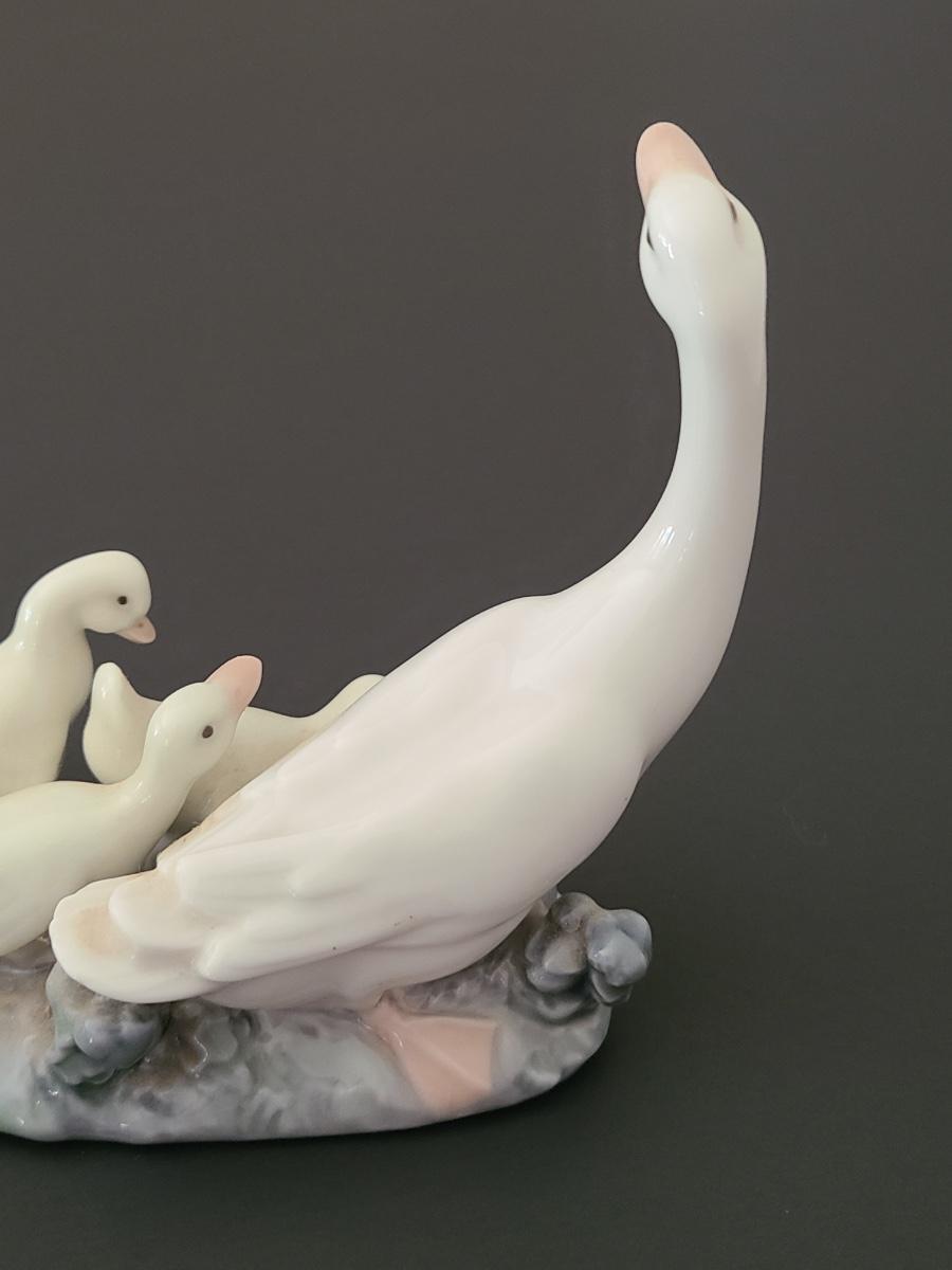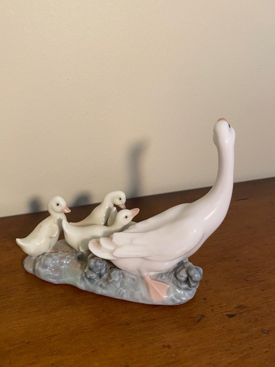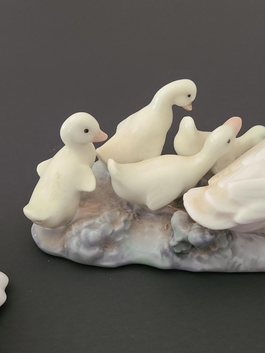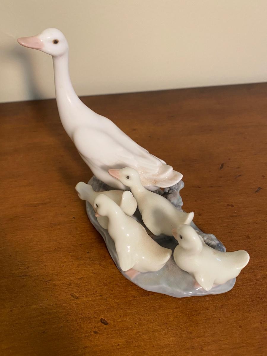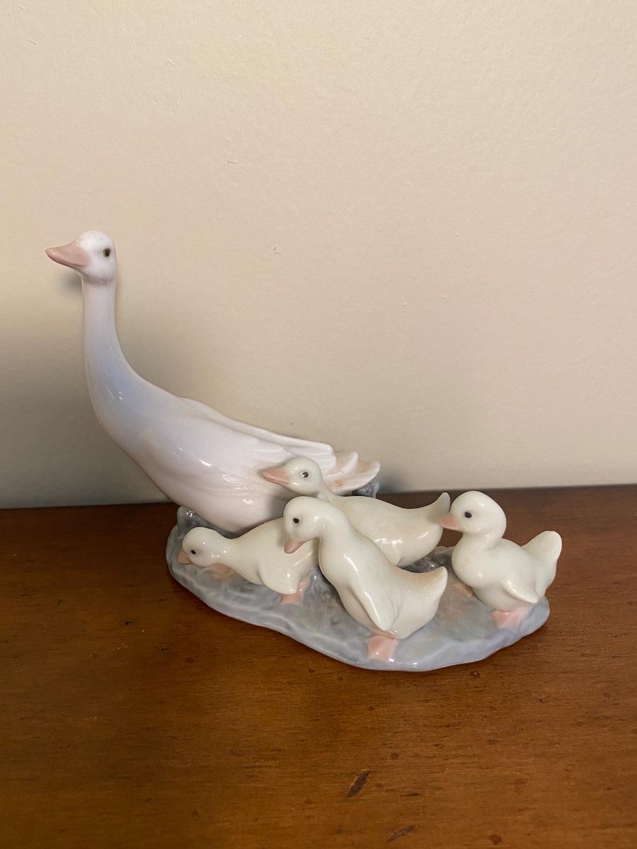 Lot 219: Lladro’s. Figures: Playful Cat and Mother Duck w/ Ducklings