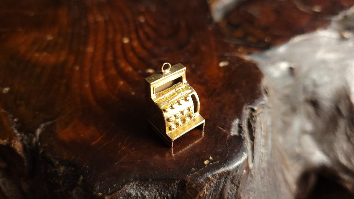 Lot 220: Vintage 14k Gold Cash Register Necklace Pendant