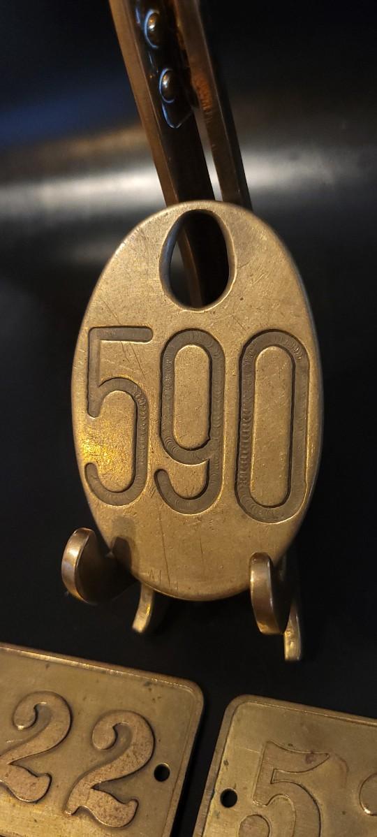 Lot 219: Assortment of (5) Vintage Hotel Room Hardware + Key Fob