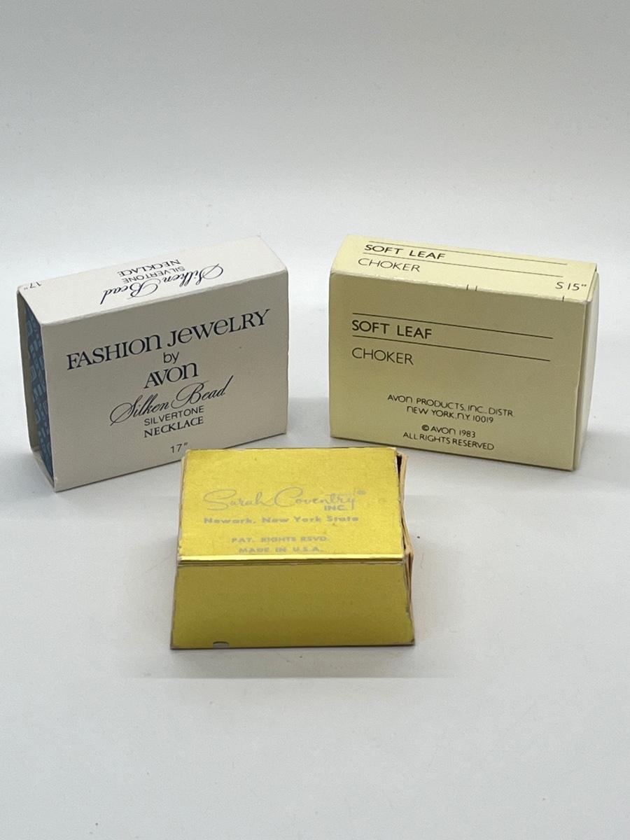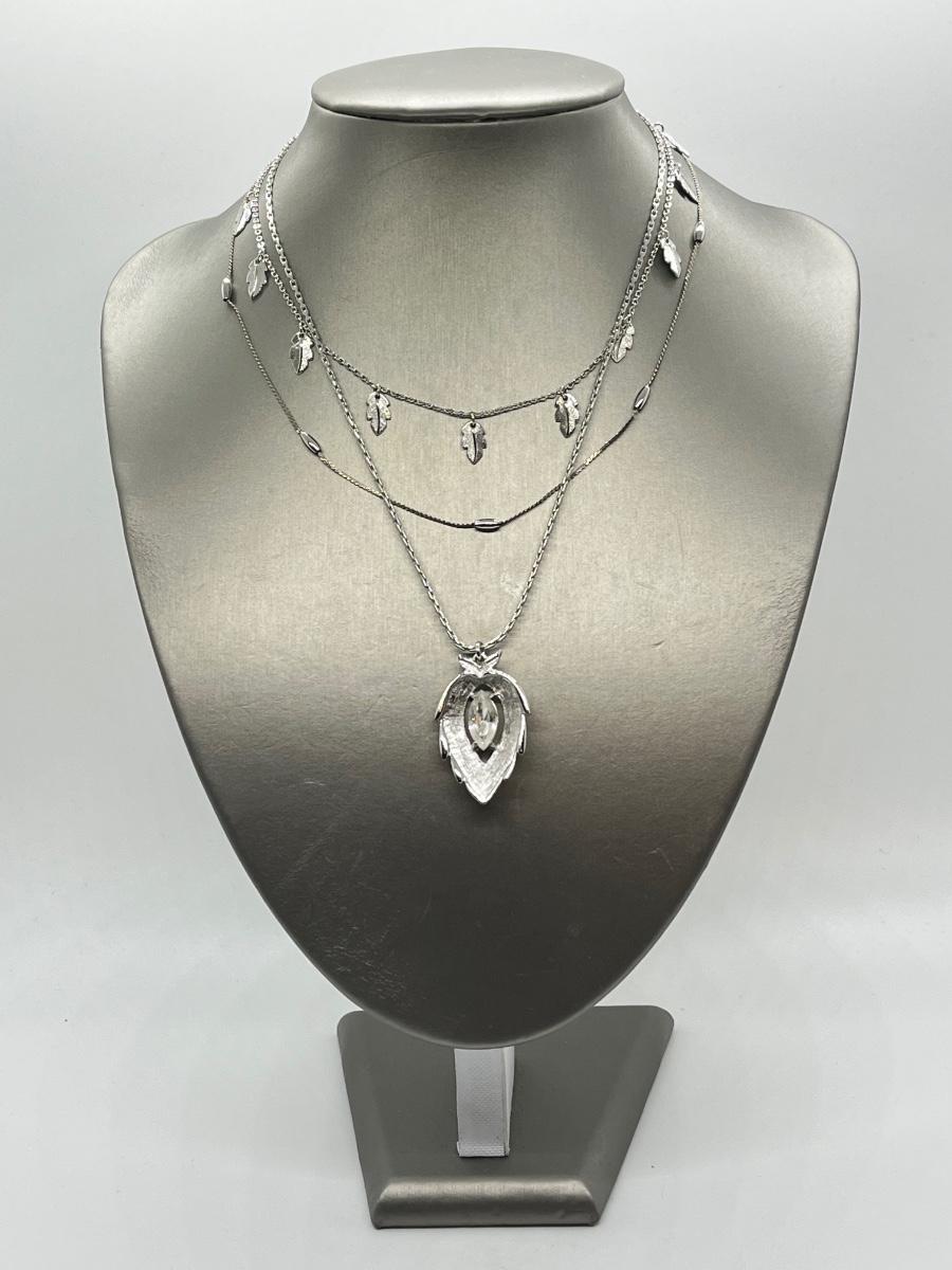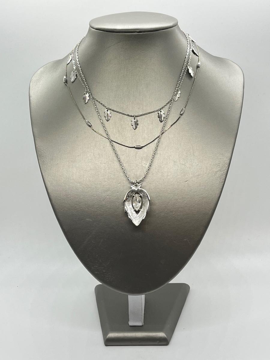 LOT 219: Sarah Coventry Silvertone Necklace with Leaf Pendant & Two Avon Necklaces