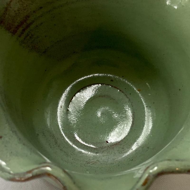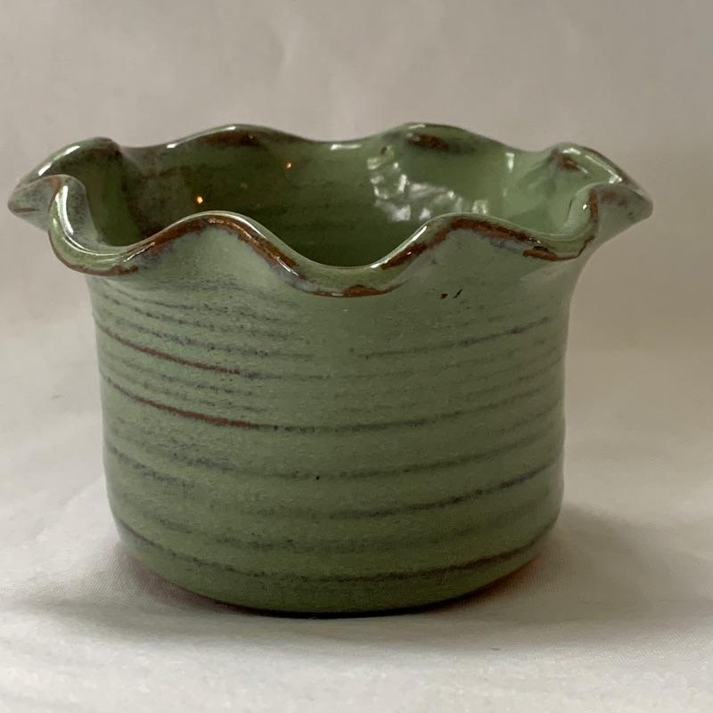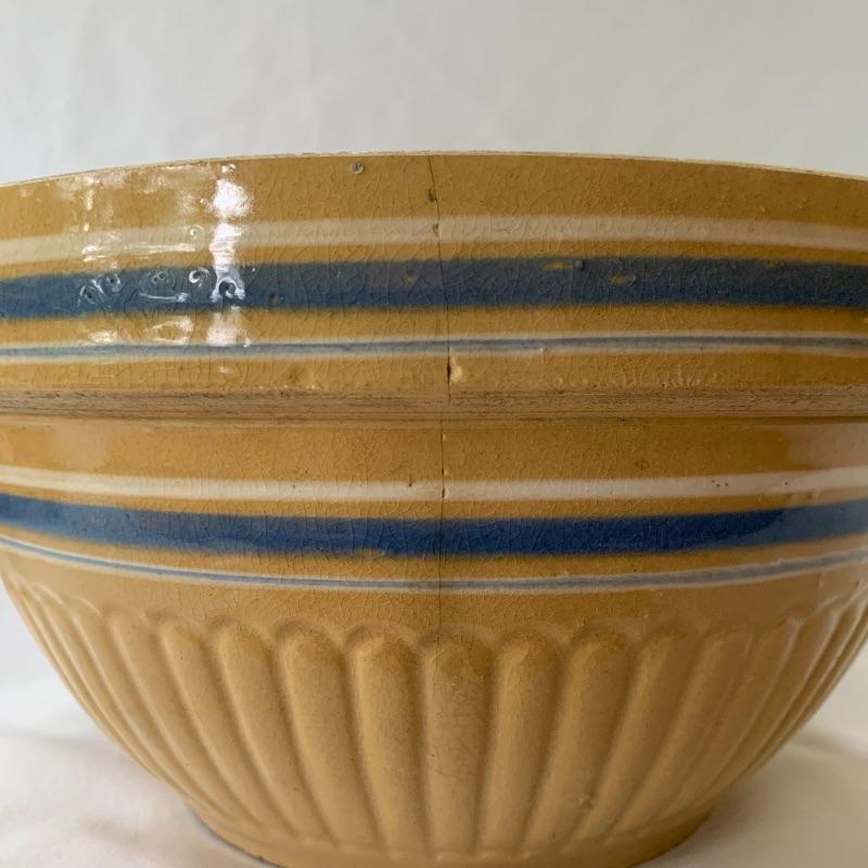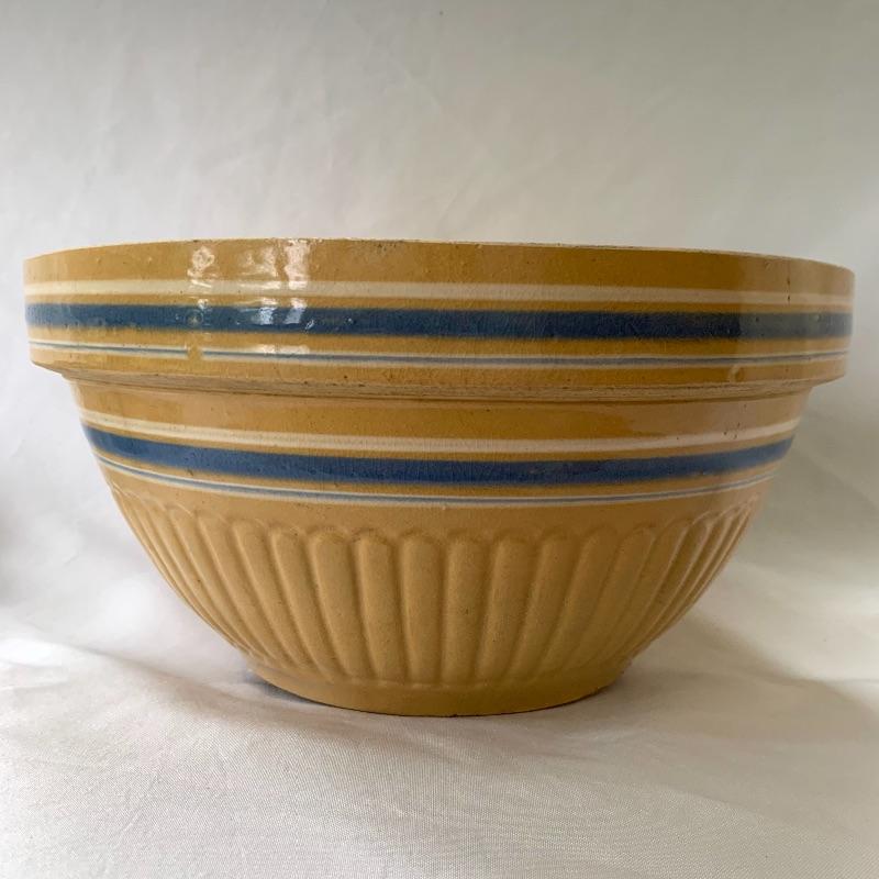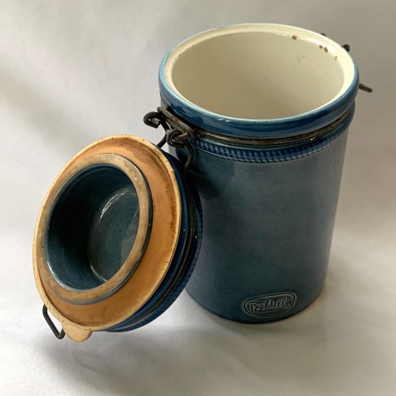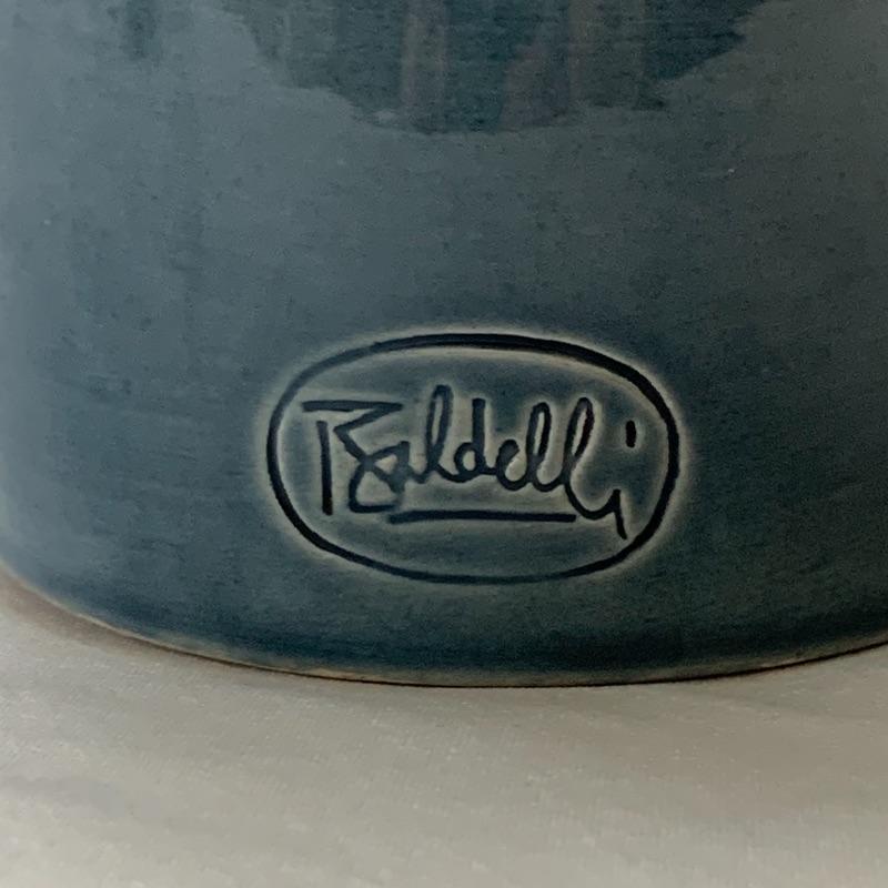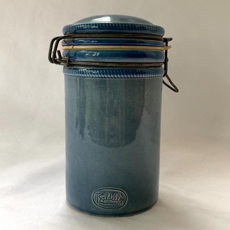 Get both functional and decorative art in this lot. There are three nice ceramic bowls. One is a large (12.5” in diameter) tan colored bowl with blue stripes decorating the outside. Another is a smaller cream colored bowl, also with blue stripes decorating the outside. The third is a small cylindrical seafoam green colored ceramic dish with a ruffled top edge. Also included is a blue cylindrical ceramic jar with a latch, by Baldelli in Italy, and a Short Wave ceramic microwave cooker with a domed chimney lid. There is also a framed poem titled “But Once” that measures 7.5” x 10” and a small wooden hand painted “Antique Store” model. Shipping available.