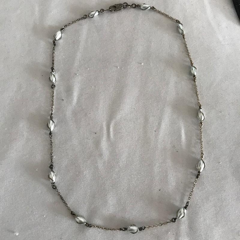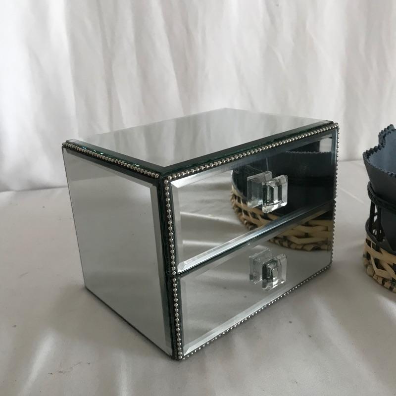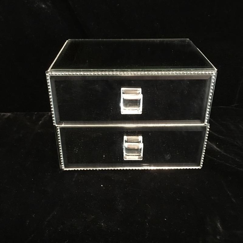 Fashion jewelry and box includes mirrored box that measures 4.75” x 6.25” x 4.75”, necklaces, four pairs of earrings including one marked 925. A pair of watches that could not be tested as batteries are dead, small locket and more.