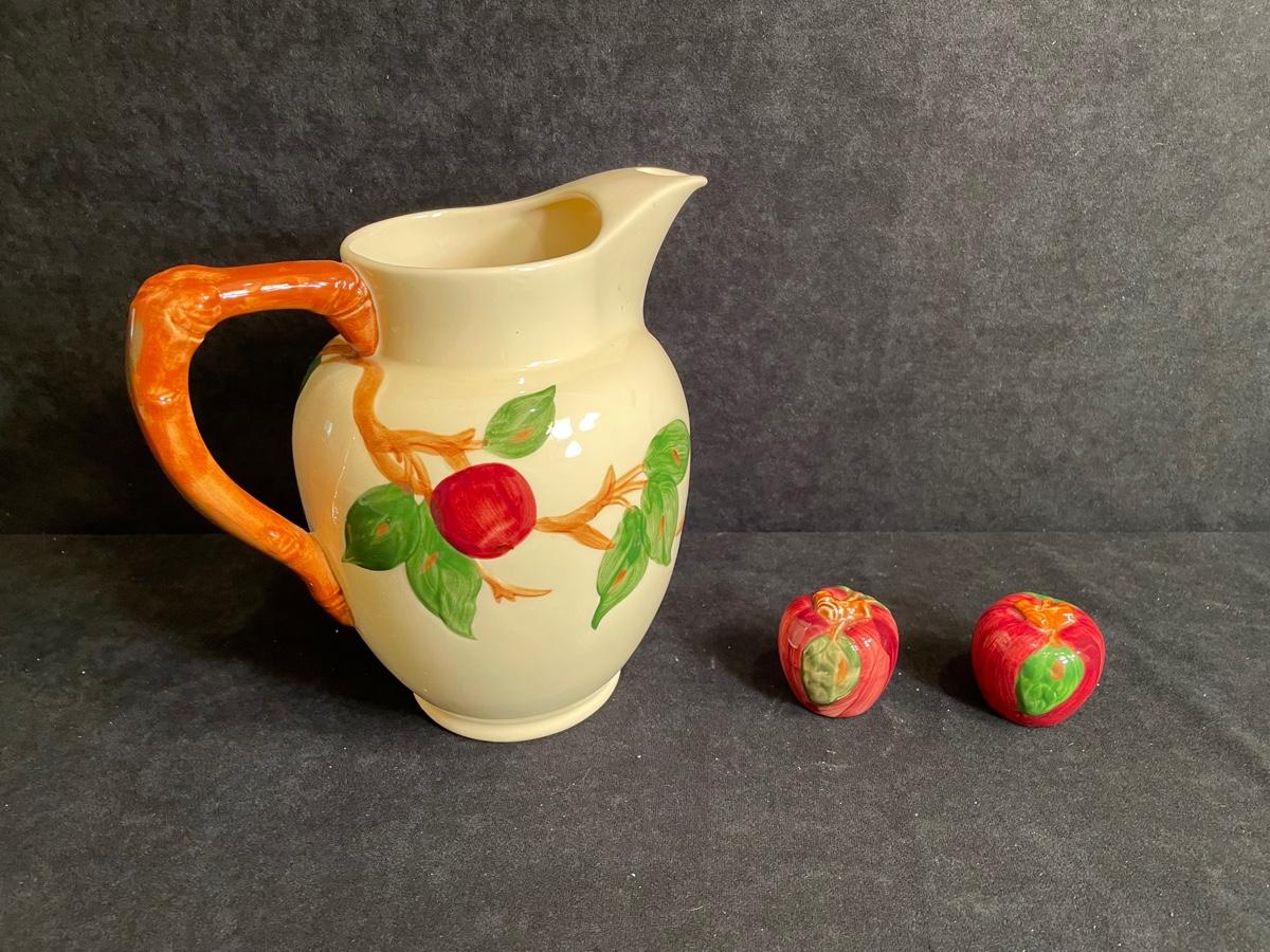 Lot 219  Franciscan Apple Water Pitcher and Salt and Pepper