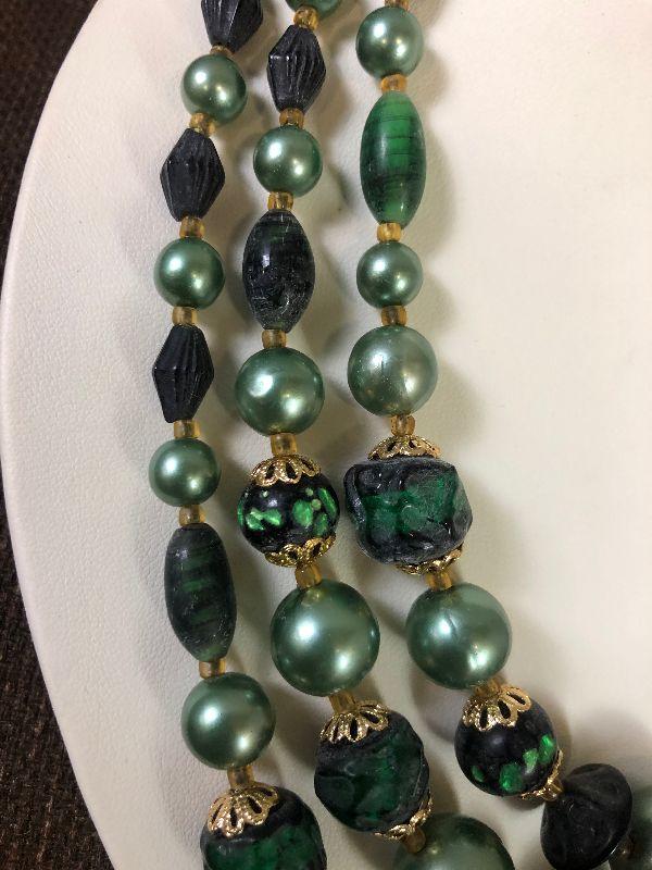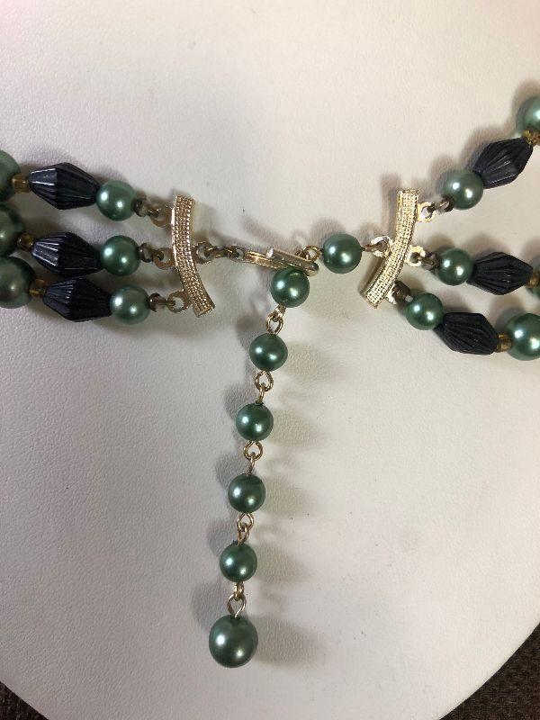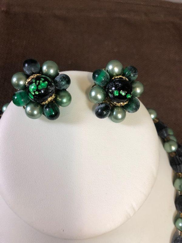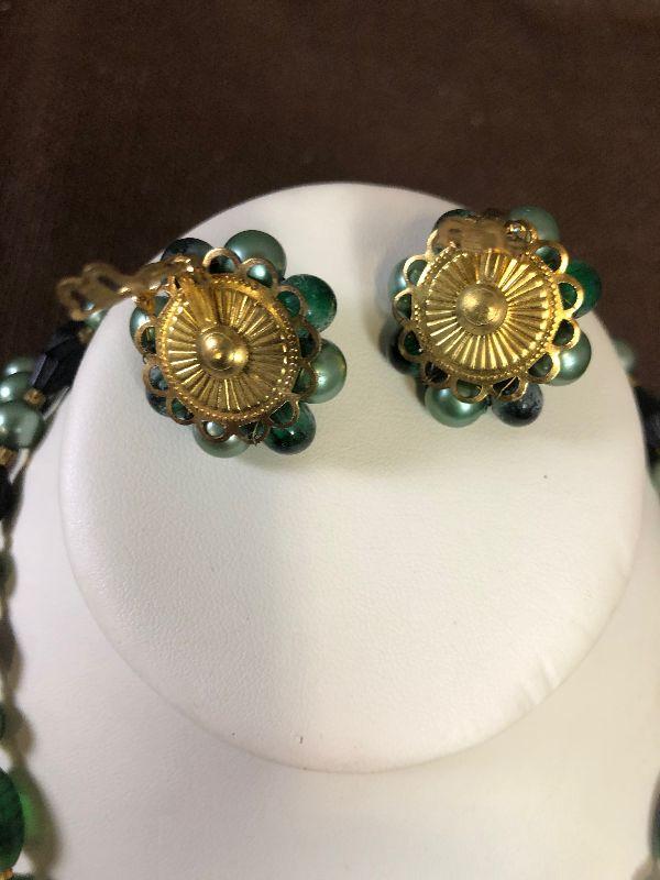Lot #219 GREEN 3 strands 1 necklace and Earrings