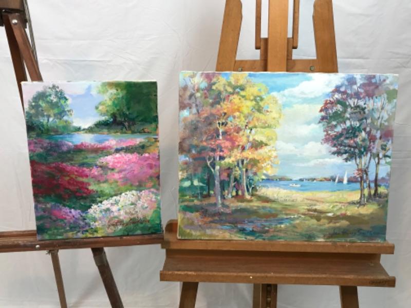 E - 219 Jean Ranney Smith Original Oil on Canvas Paintings “Creek View” “Lake View”