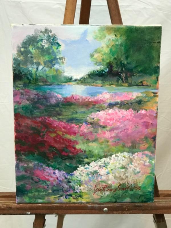 Pair of Jean Ranney Smith signed original oil painting on canvas “Creek View” measures 20”x16” and “Lake View” measures 14”x11”
